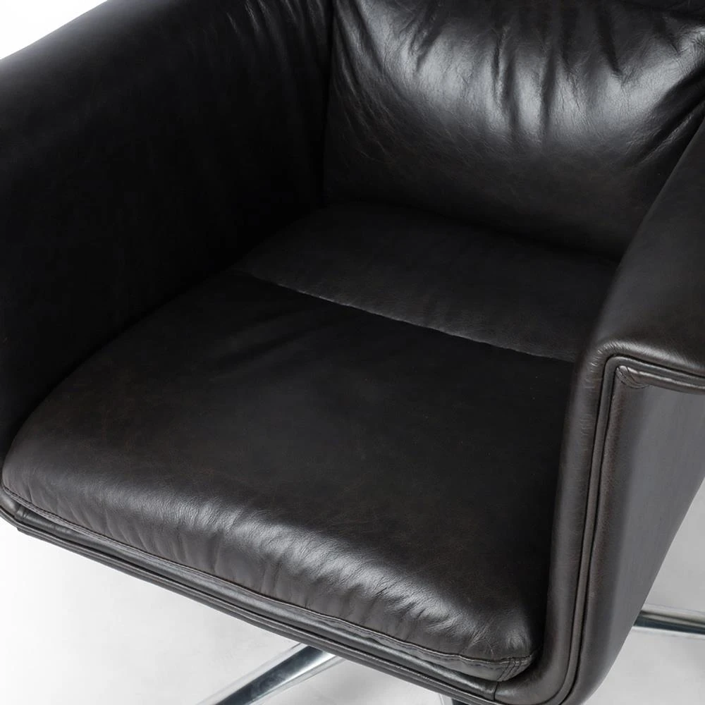 • George Rustic Lodge Dark Brown Leather Upholstered Swivel Conference Office Chair|Kathy Kuo Home