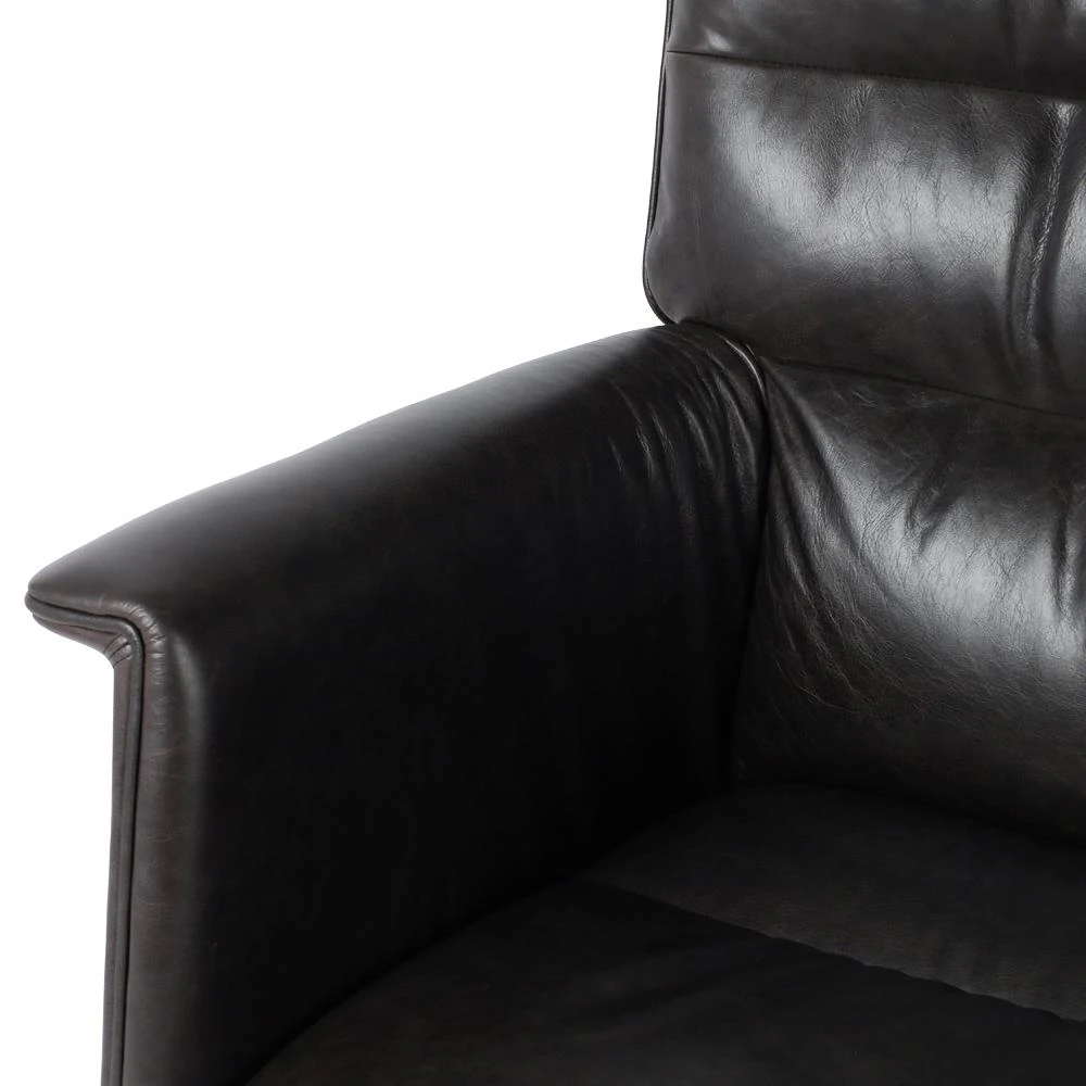 • Upholstered in black top grain leather