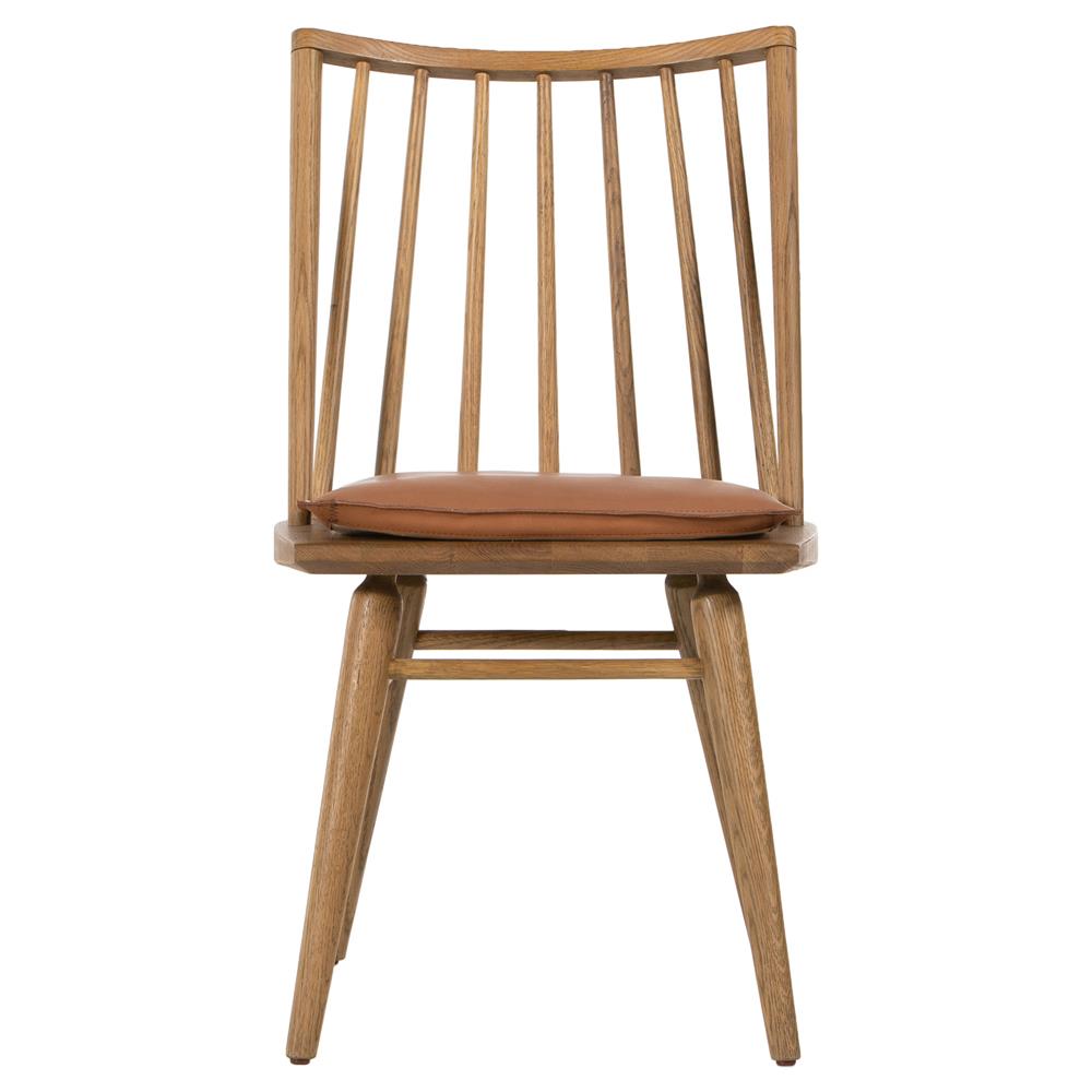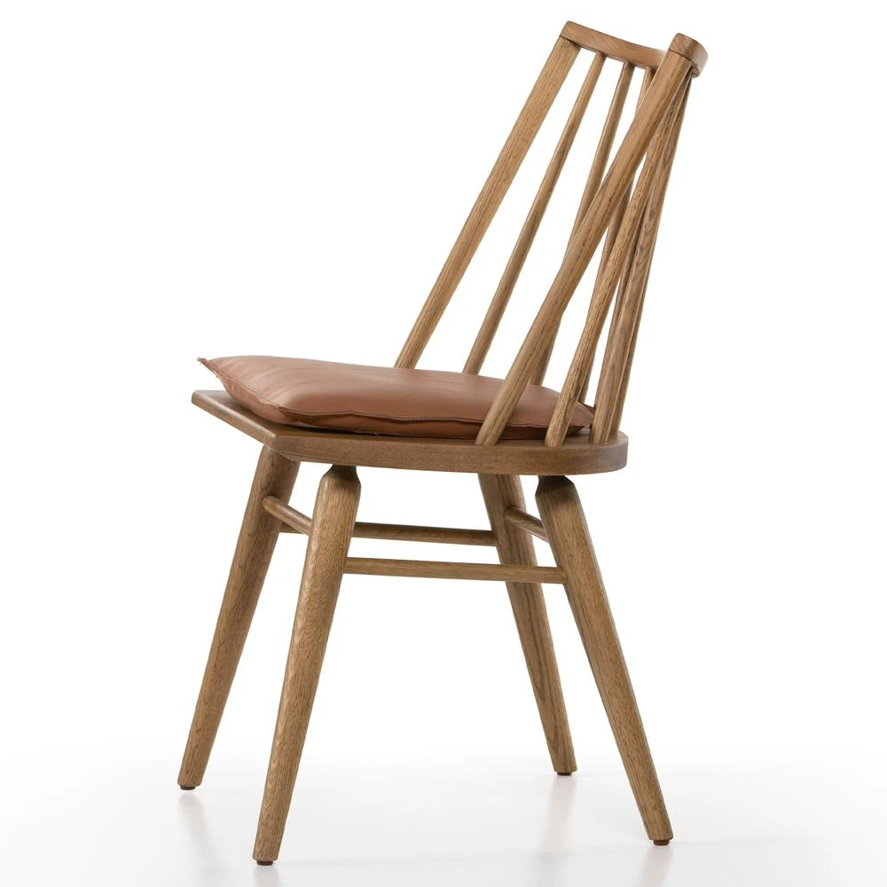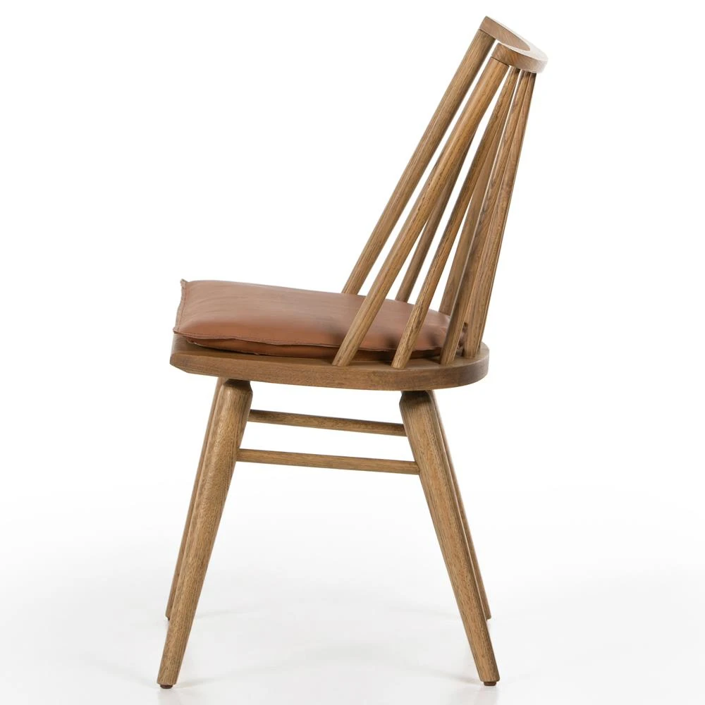 Lara Rustic Lodge Brown Leather Oak Windsor Dining Side Chair