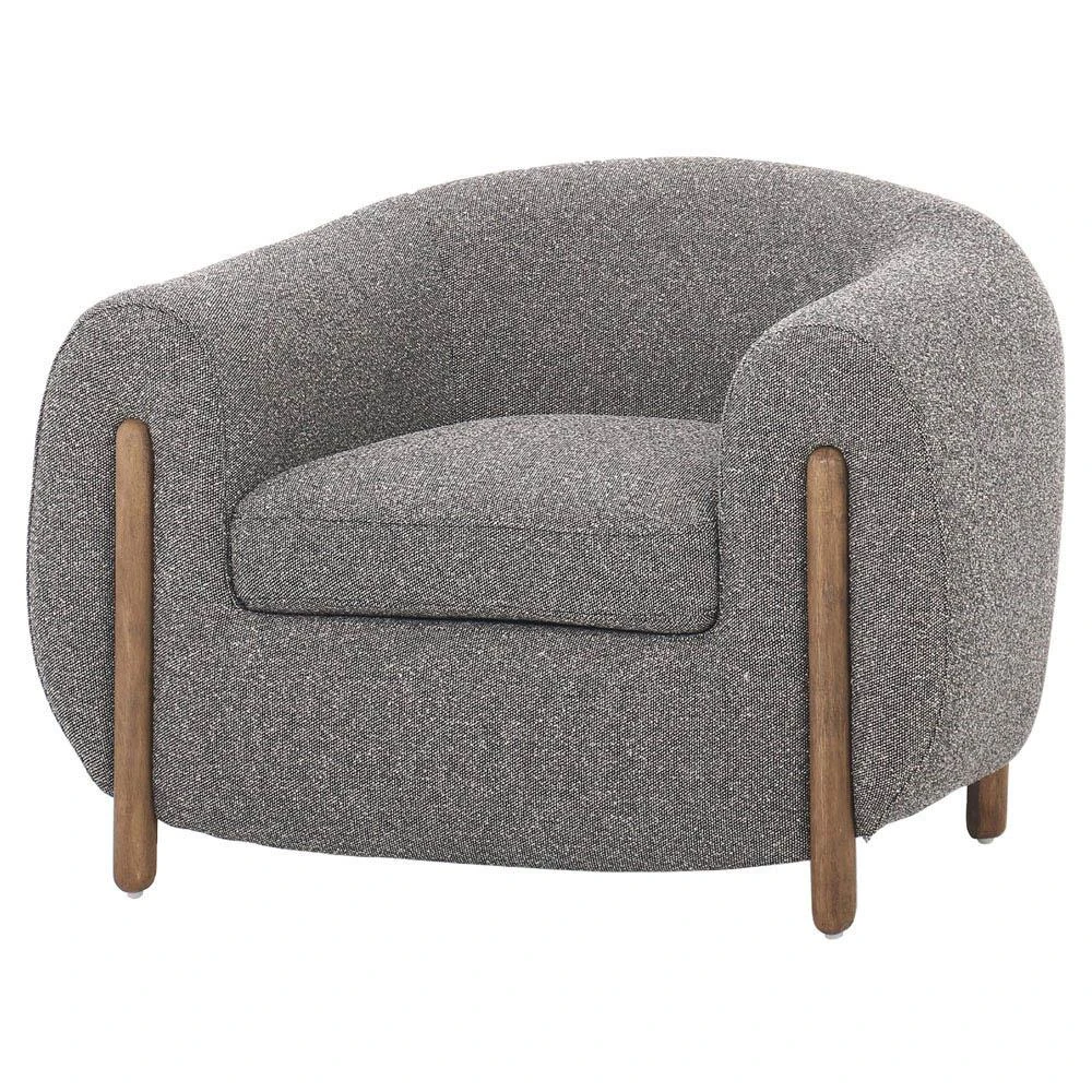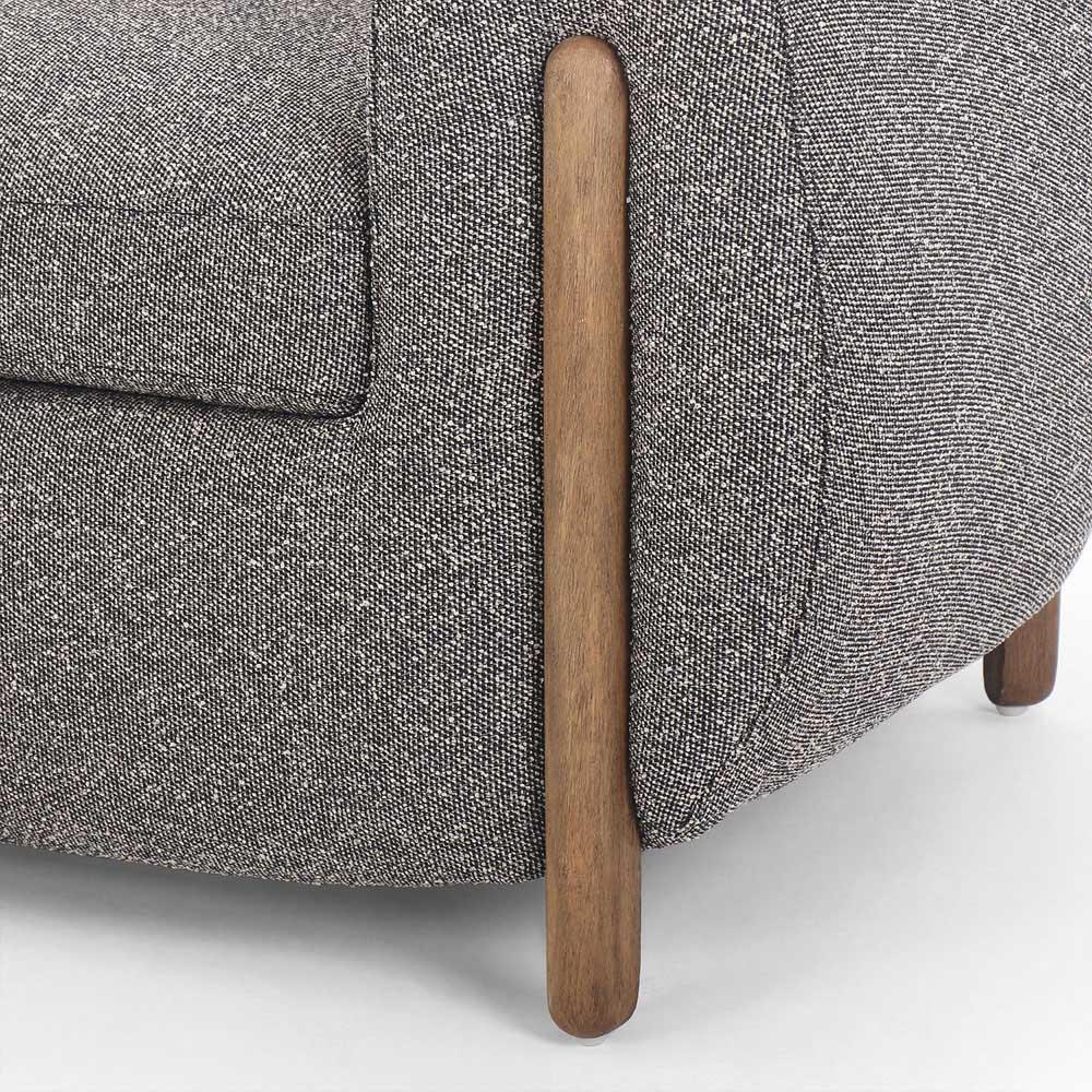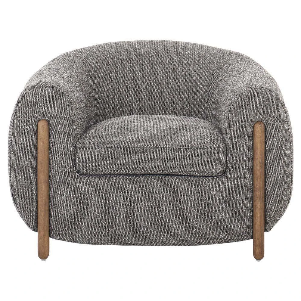 Riley Mid Century Modern Grey Performance Brown Wood Barrel Chair