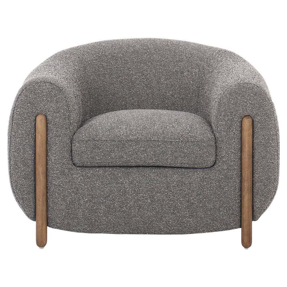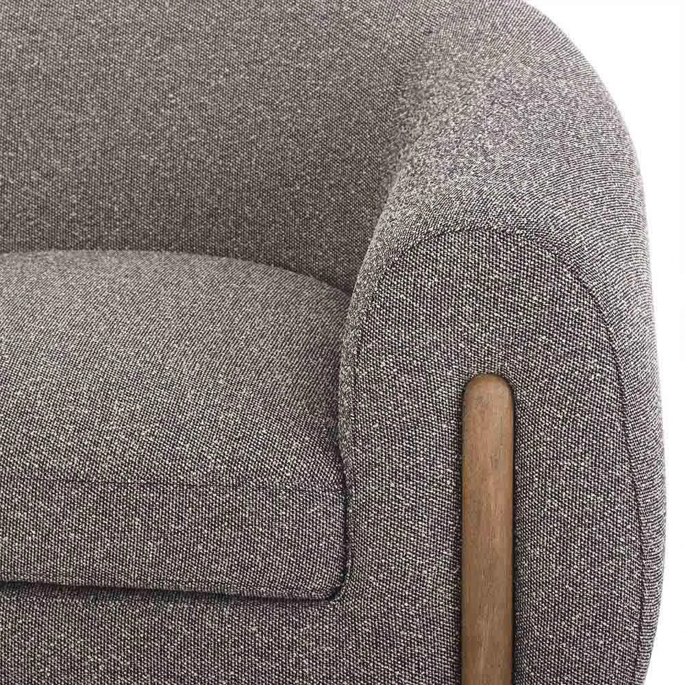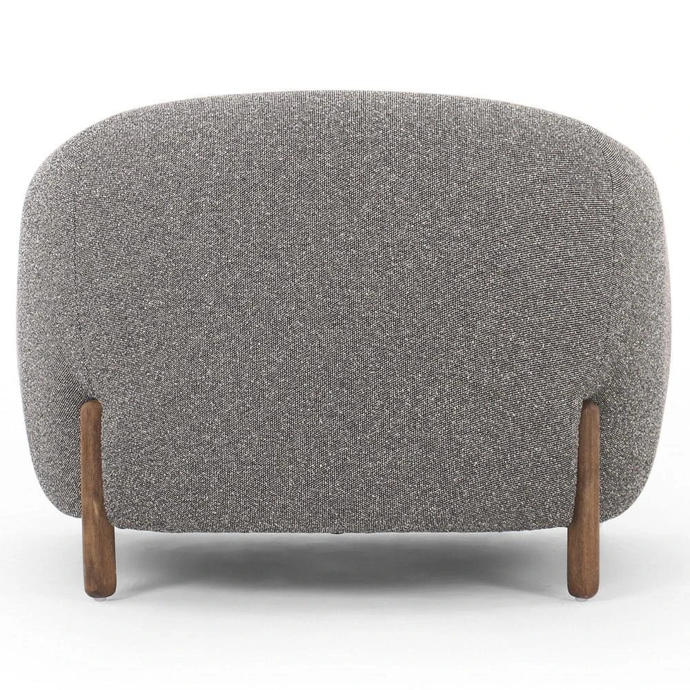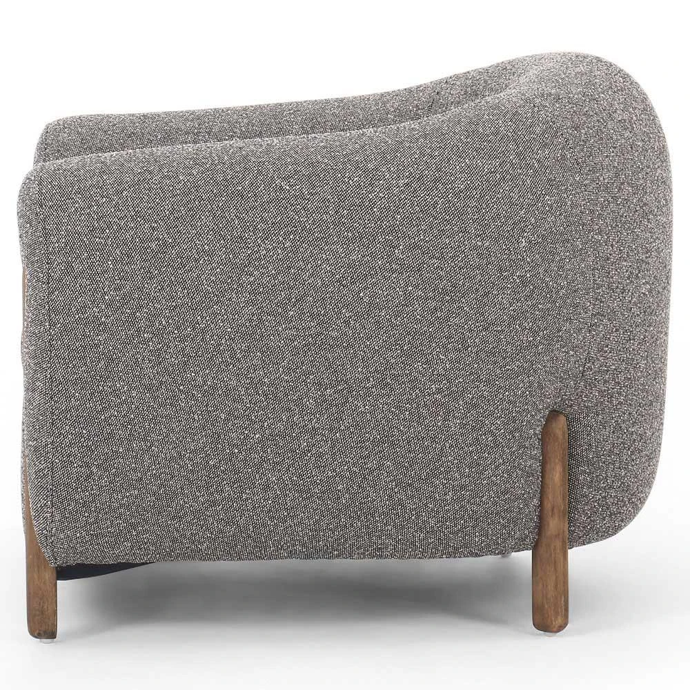 Riley Mid Century Modern Grey Performance Brown Wood Barrel Chair