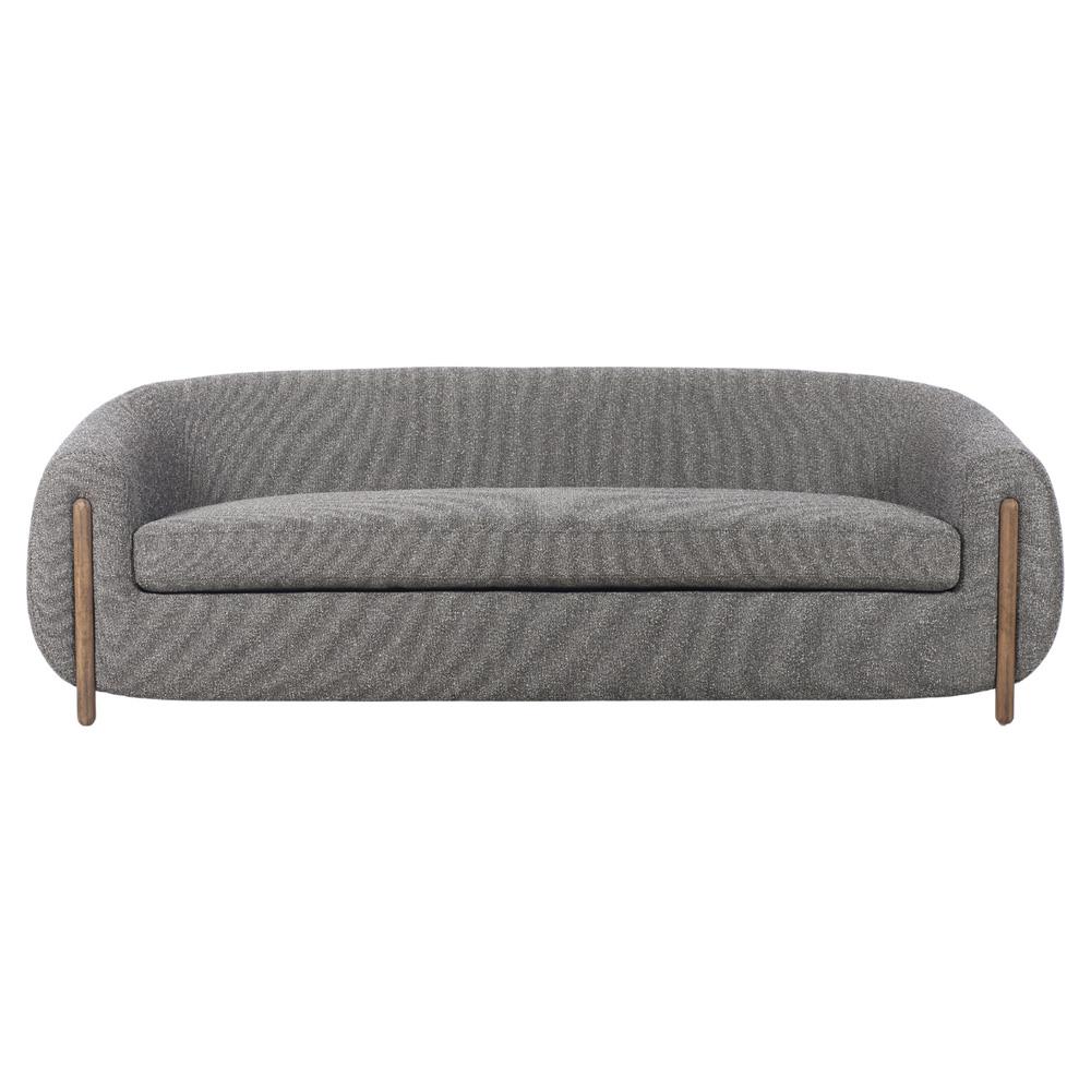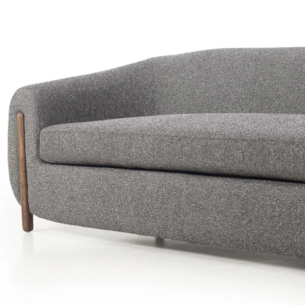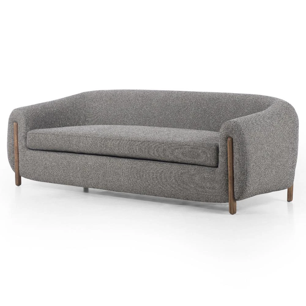 Riley Mid Century Modern Grey Performance Upholstered Natural Wood Sofa - 86.5"W