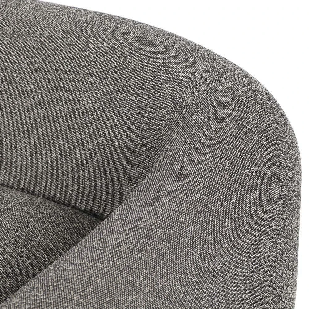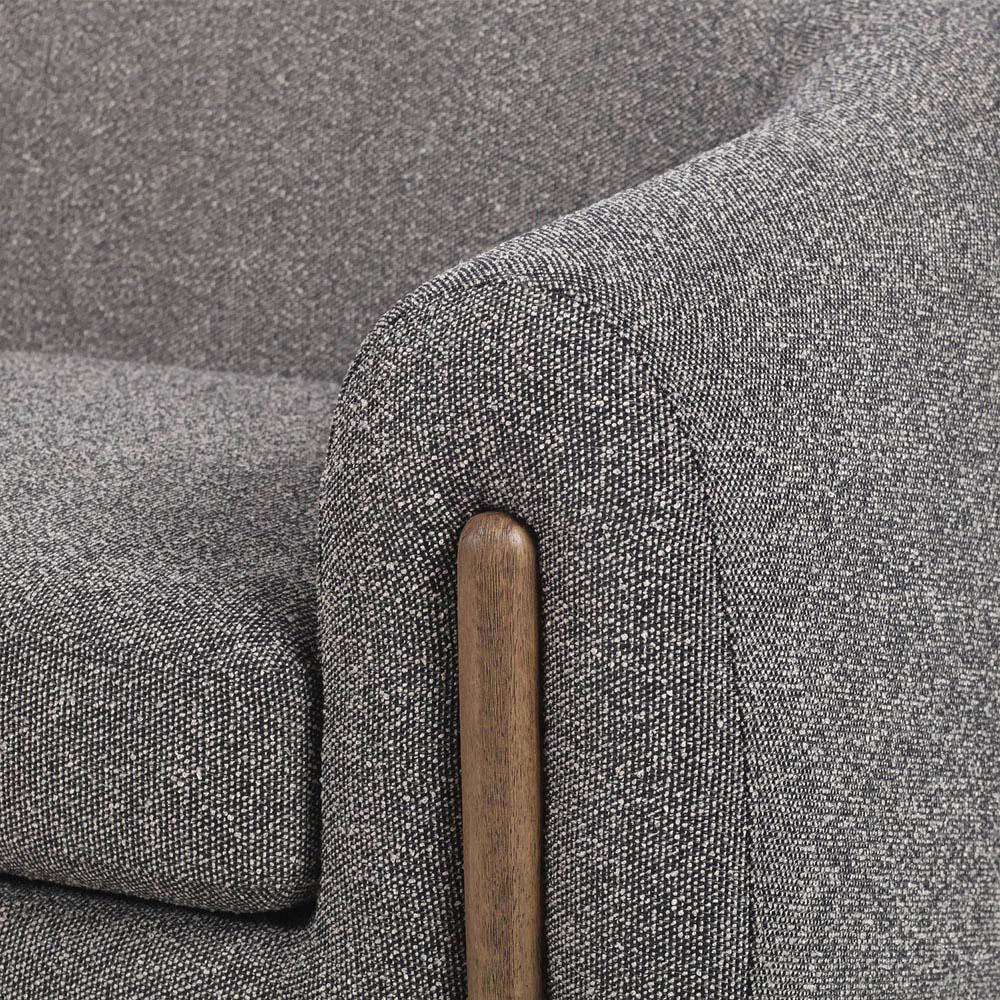 • Upholstered in grey performance fabric. Fabric content: 100% polyester; Fabric rub count: 25,000; Filling in seat: 70% polyurethane foam, 15% fiber and 15% duck feather