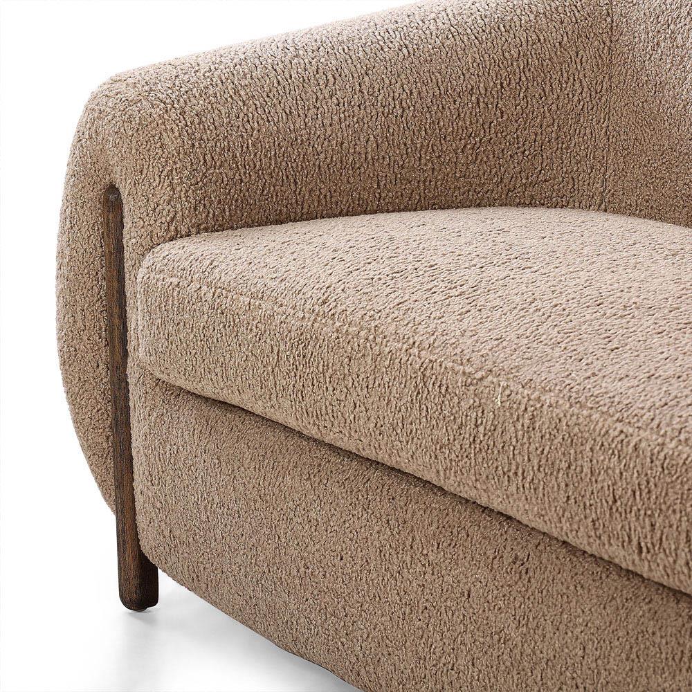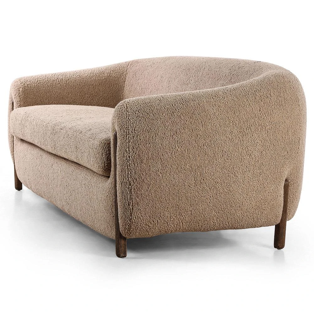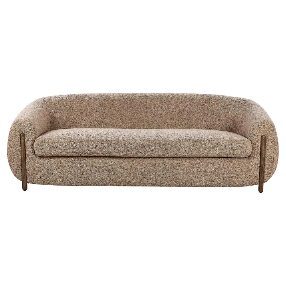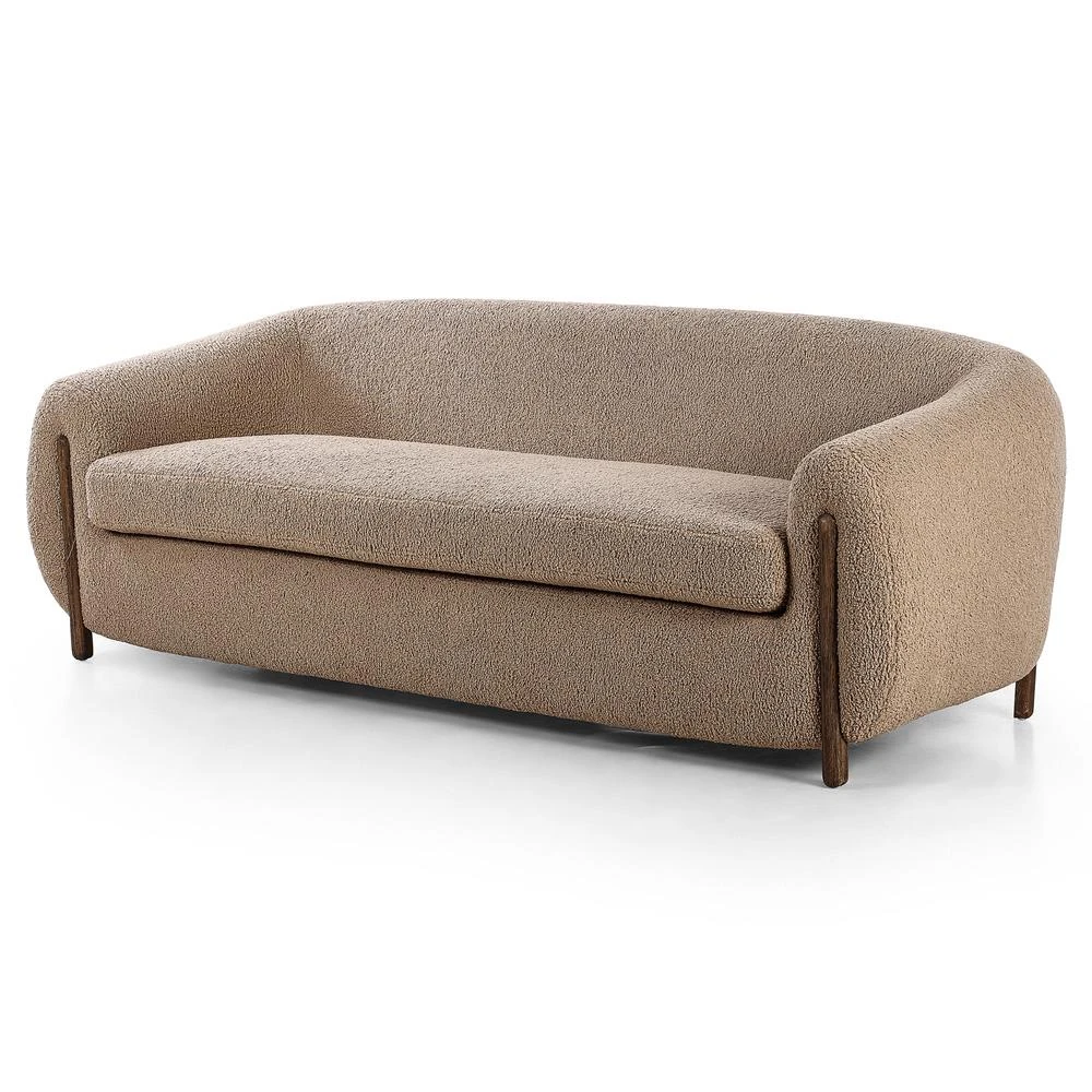 Riley Mid Century Modern Light Brown Upholstered Natural Wood Sofa - 86.5"W