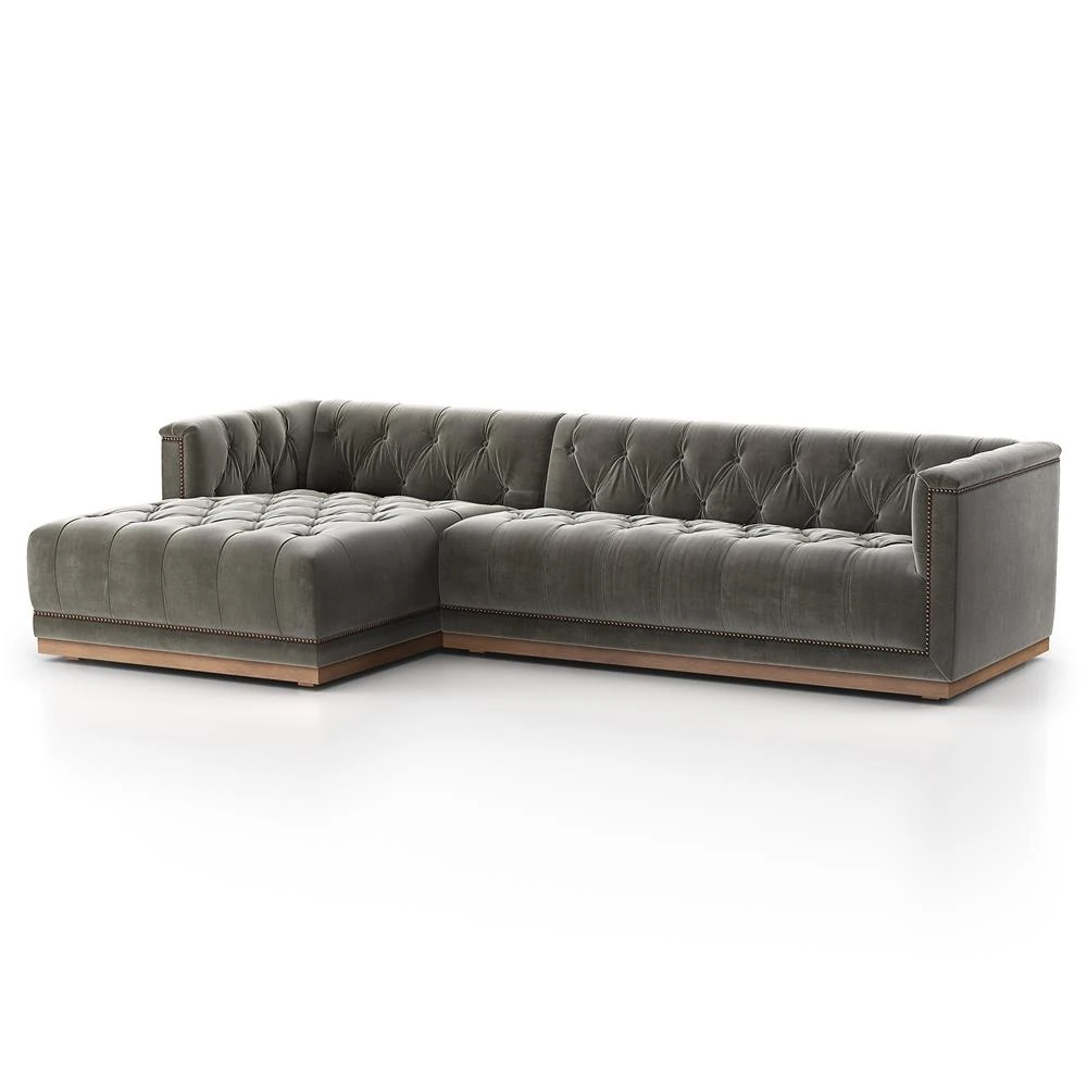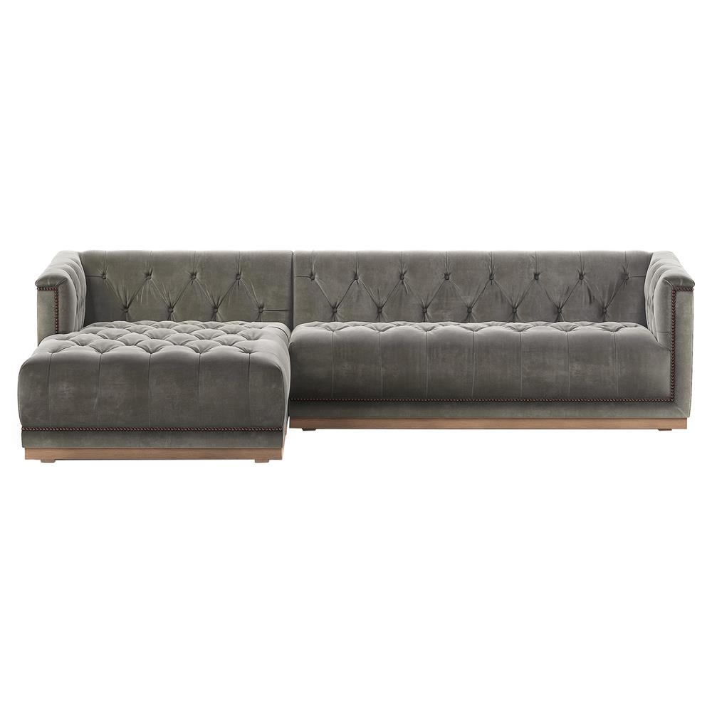 Emmy Rustic Grey Upholstered Velvet Sectional - Left Arm Facing - 109"W x 62"D
