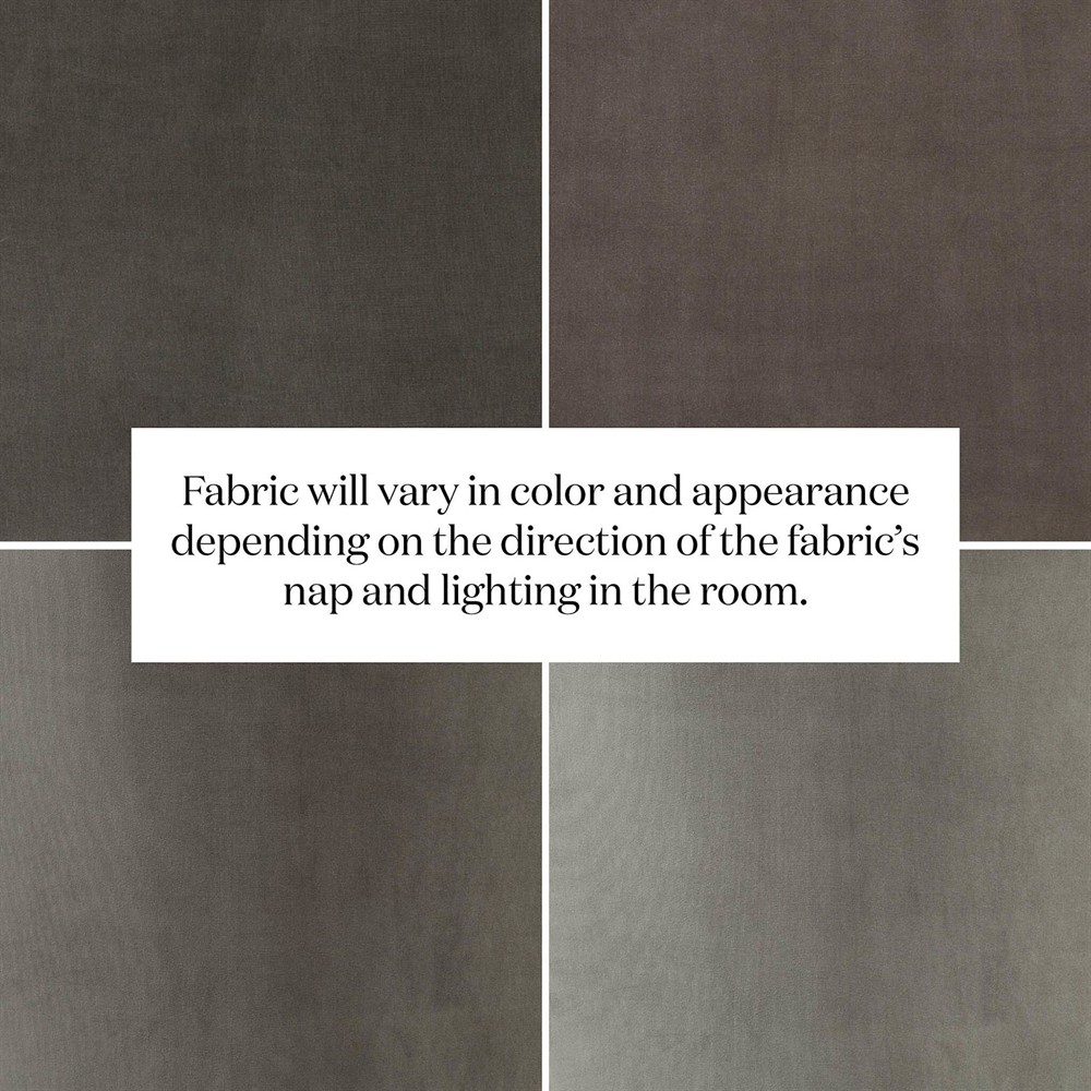 • Upholstered in "Sapphire Birch" velvet fabric. Fabric content: 92% polyester, 5% cotton and 3% latex; Grey with slight brown undertone