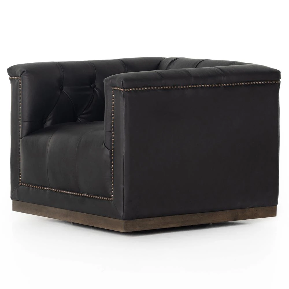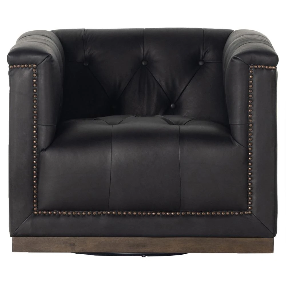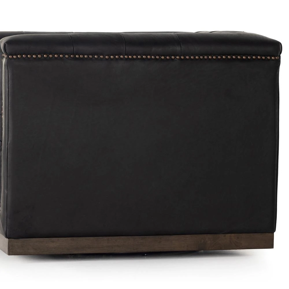• Features nailhead trim, a tufted seat and back, and smooth swivel base