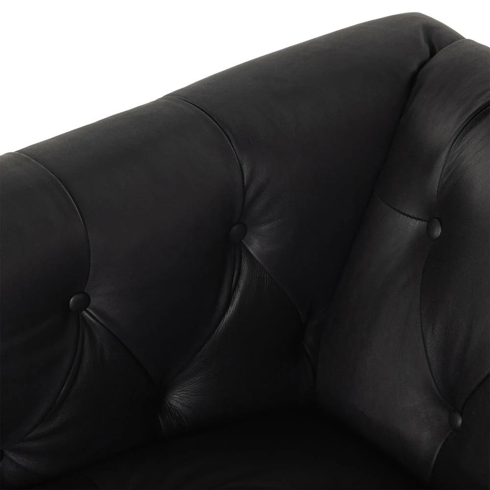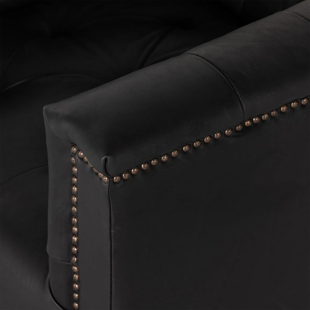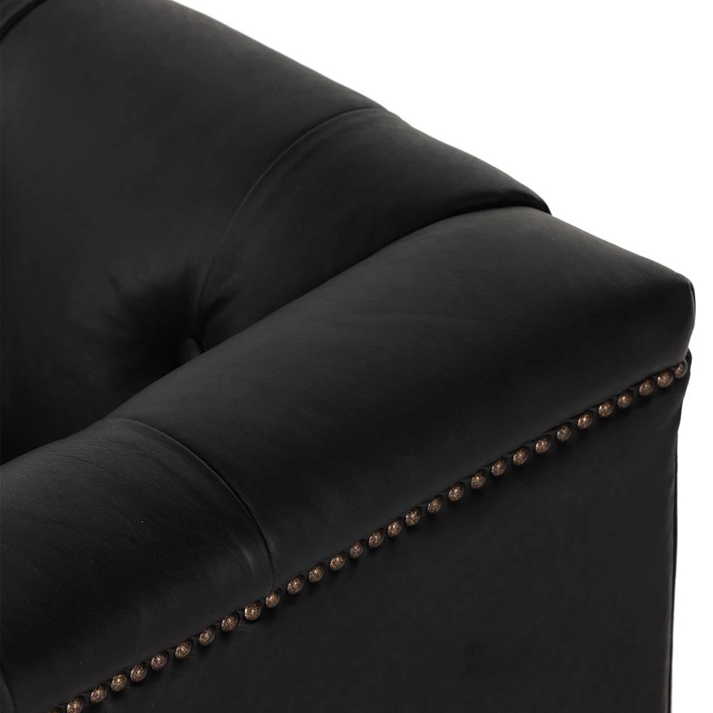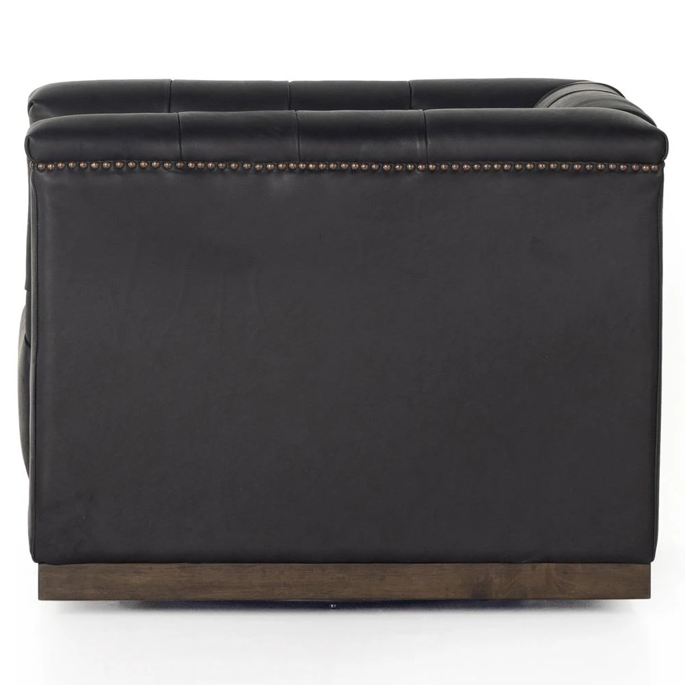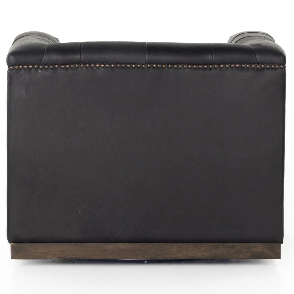 Emmy Rustic Lodge Black Leather Tufted Nailhead Trim Swivel Club Chair