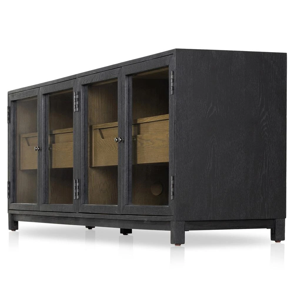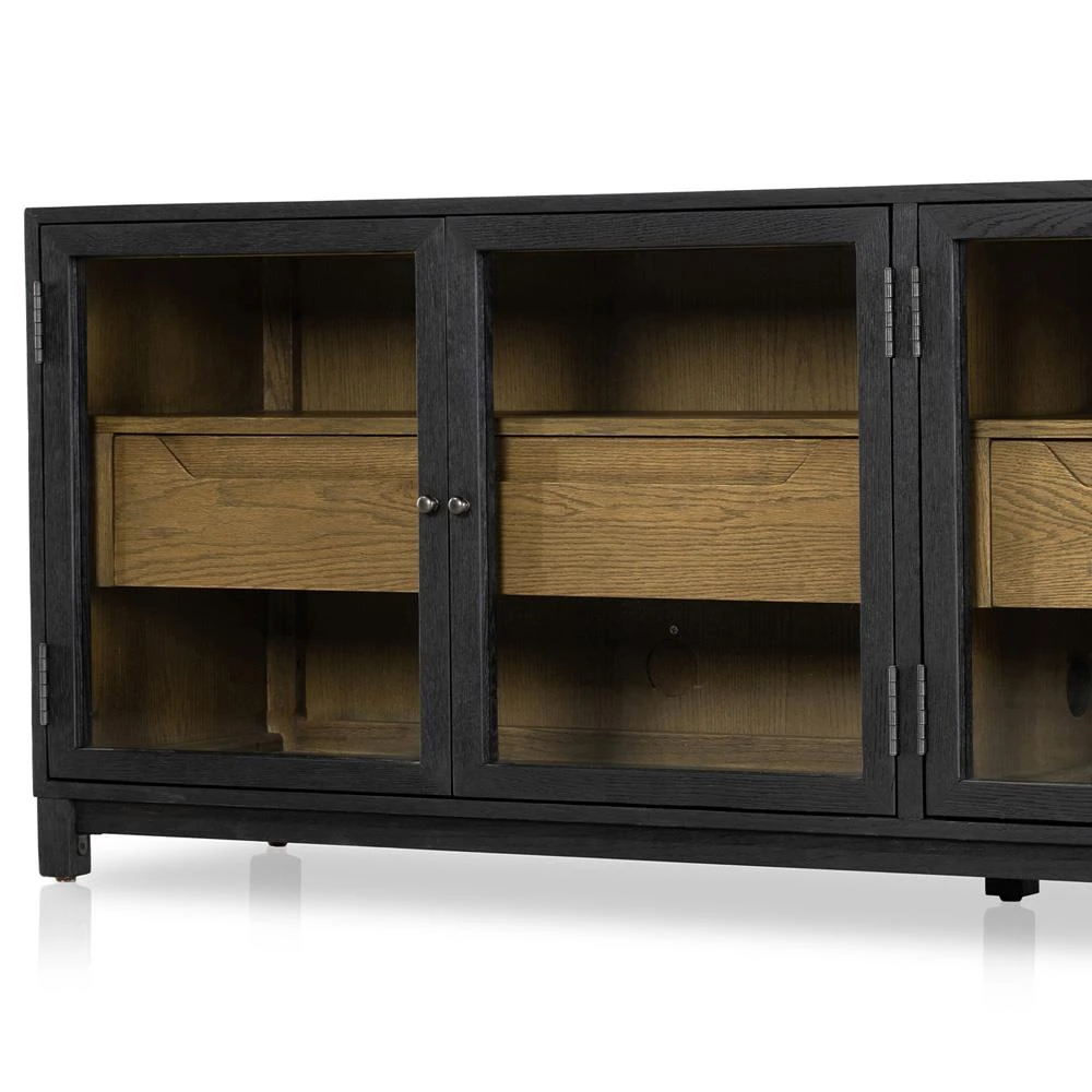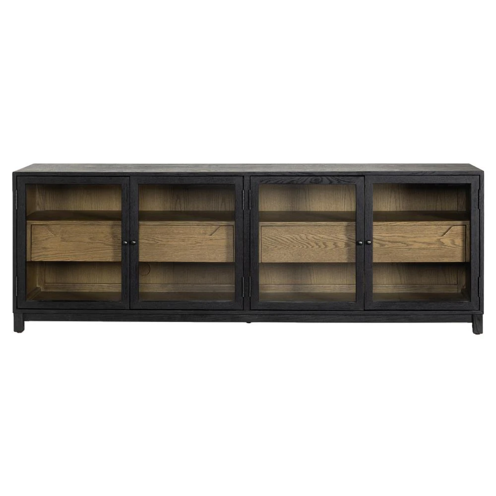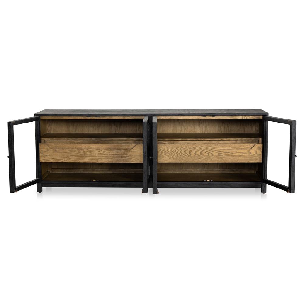 Clarence Rustic Lodge Black Oak Wood Clear Glass 4 Door Media Cabinet - 78"W