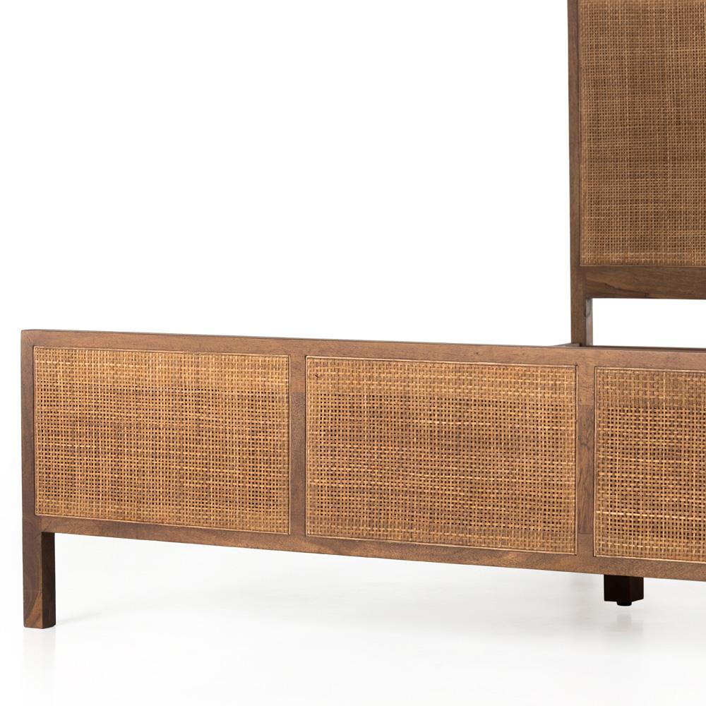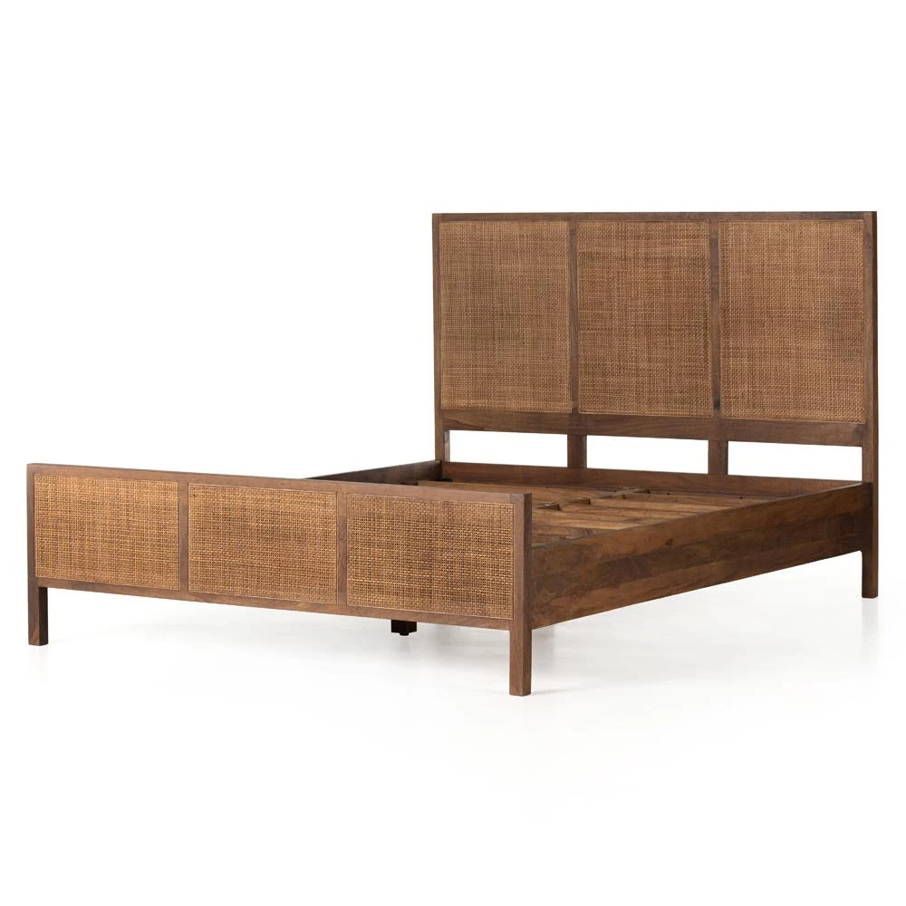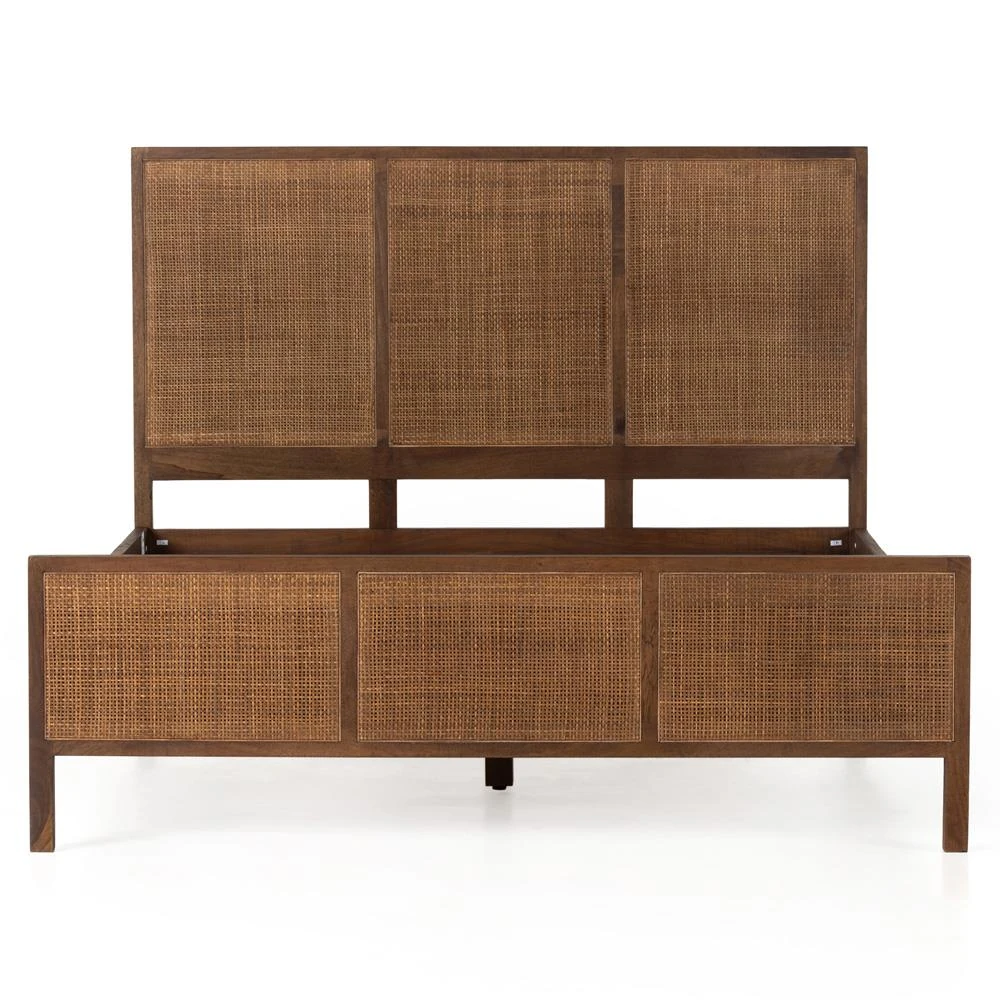 Rhian Coastal Beach Dark Brown Woven Cane Mango Wood Frame Bed - King