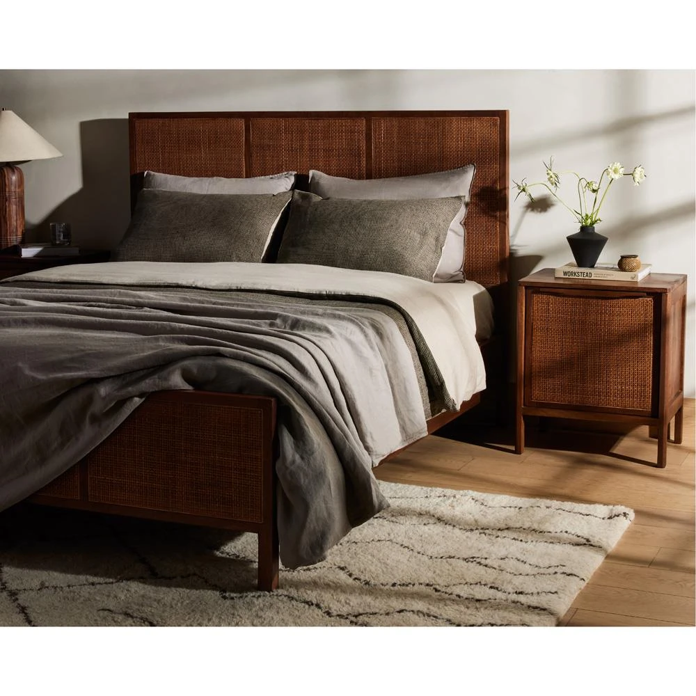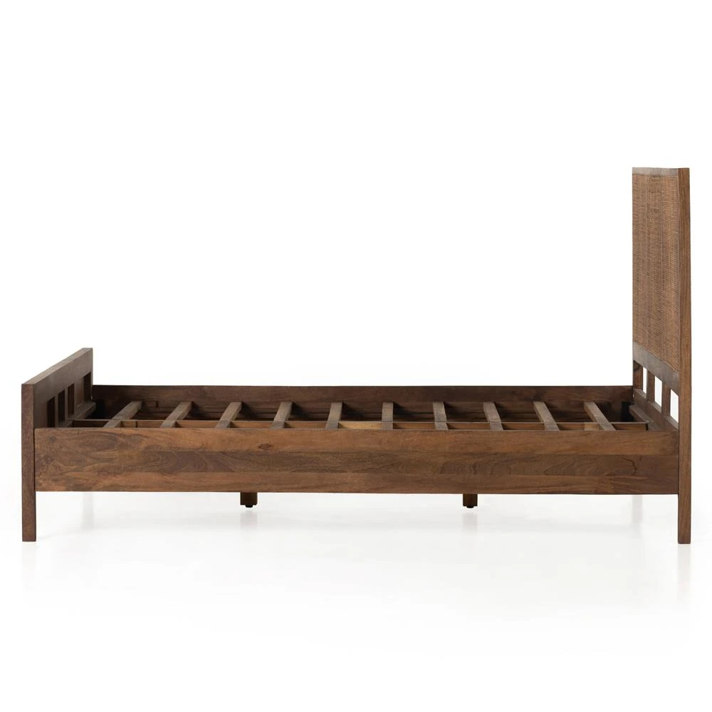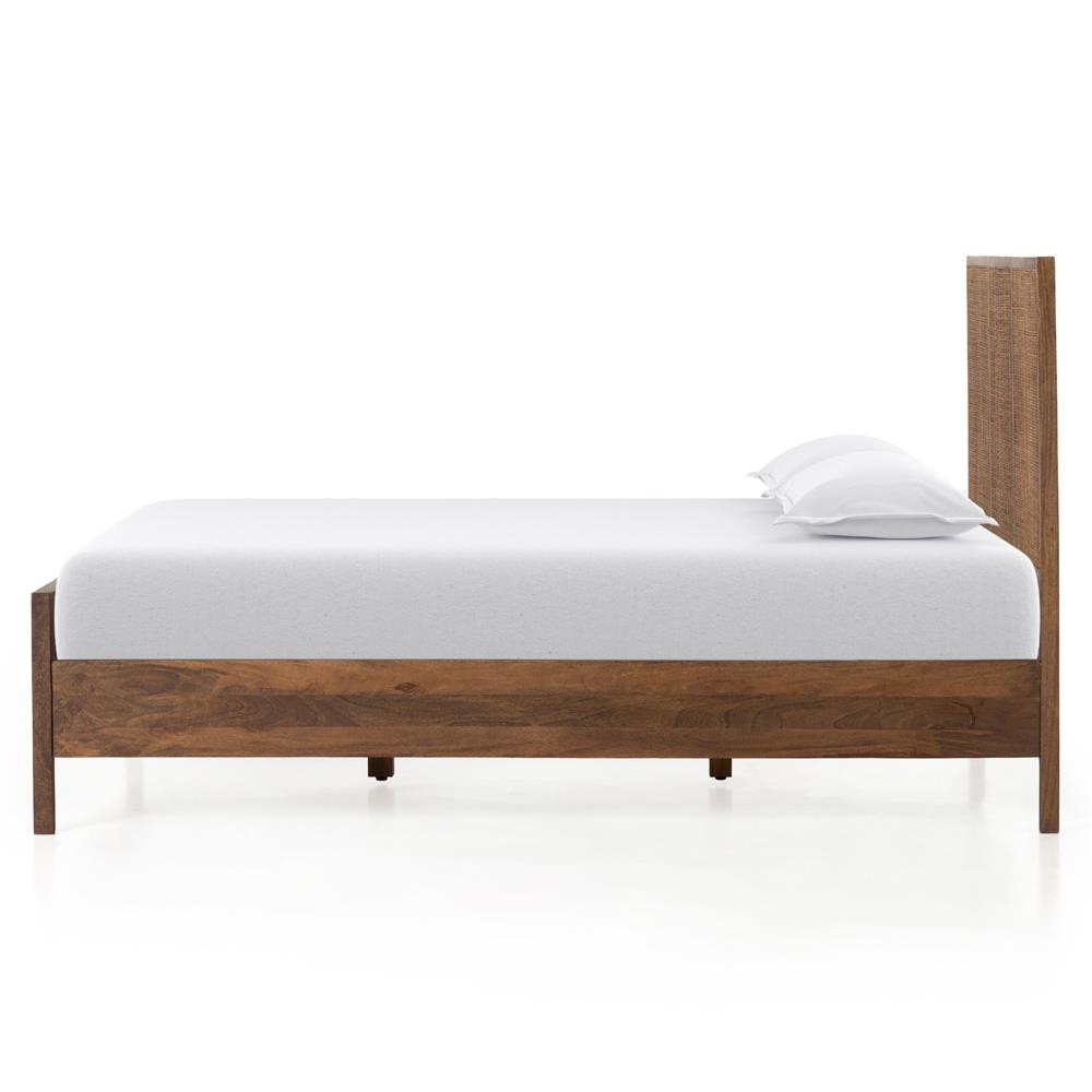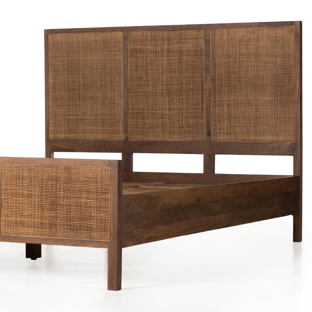 Rhian Coastal Beach Dark Brown Woven Cane Mango Wood Frame Bed - King