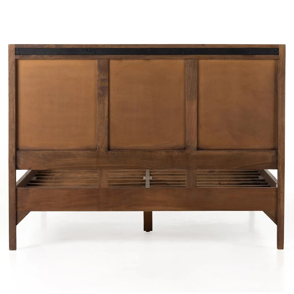 • Hubert Rustic Lodge Brown Leather Upholstered Wood Classic Bed - Queen|Kathy Kuo Home