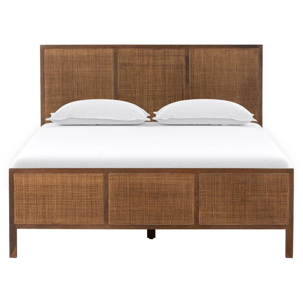 Rhian Coastal Beach Dark Brown Woven Cane Mango Wood Frame Bed - King Image 1