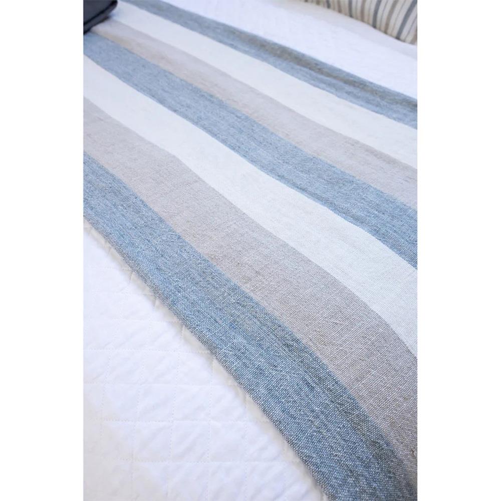 Pom Pom Monterey Coastal Beach Blue Striped Linen Oversized Throw