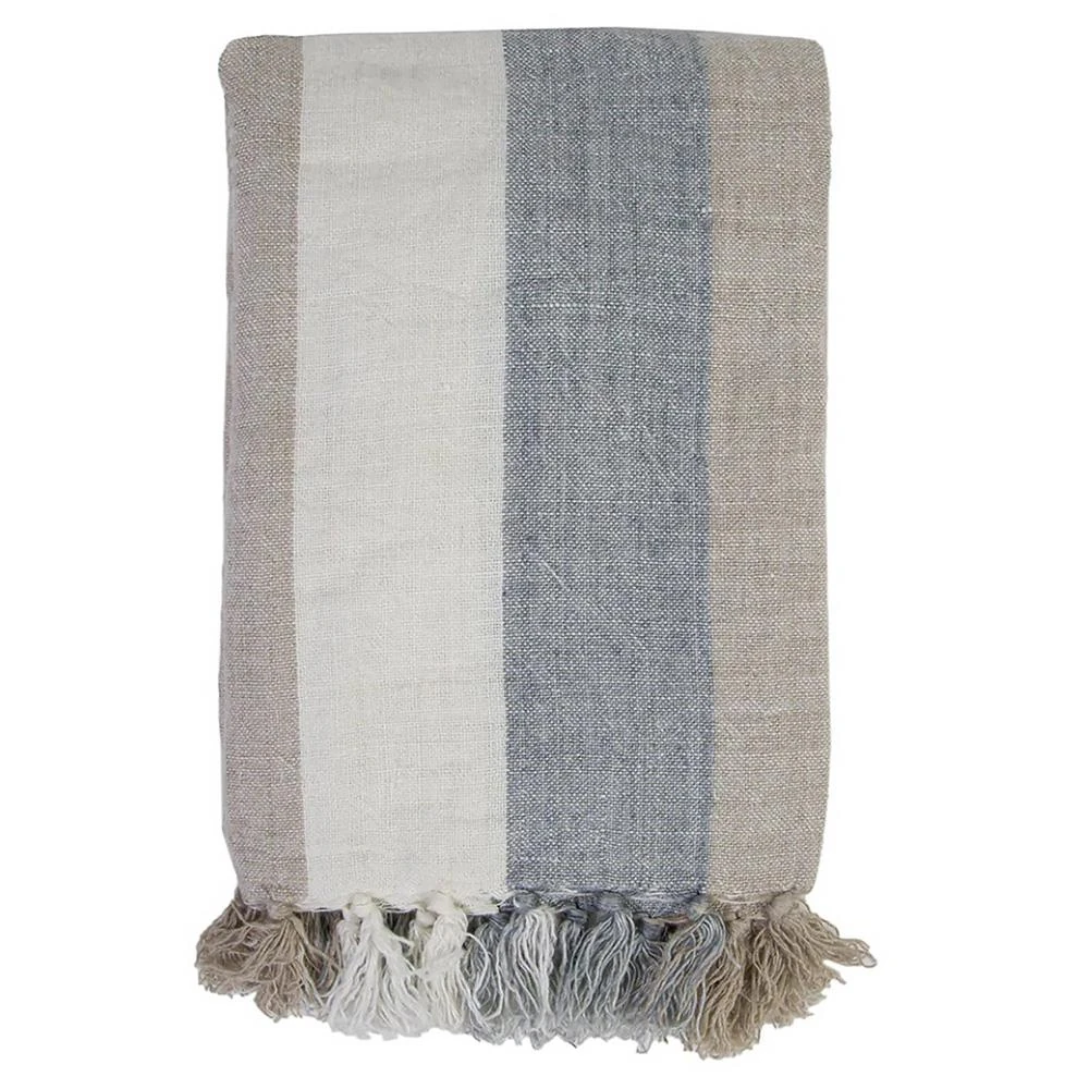 Pom Pom Naples Coastal Beach Blue Striped Linen Oversized Throw