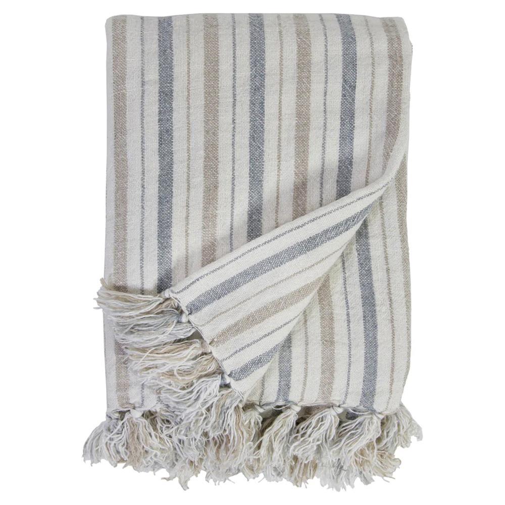 Pom Pom Naples Coastal Beach Blue Striped Linen Oversized Throw