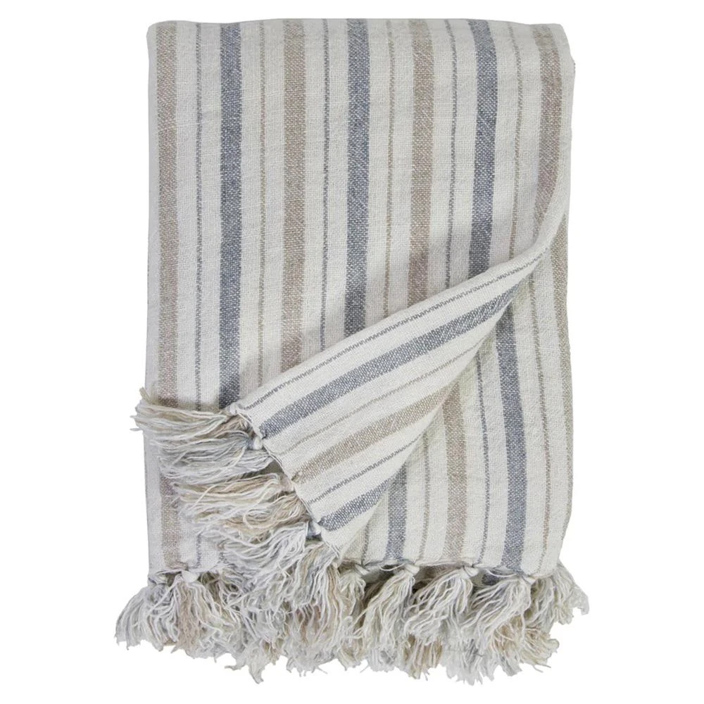 Pom Pom Monterey Coastal Beach Blue Striped Linen Oversized Throw