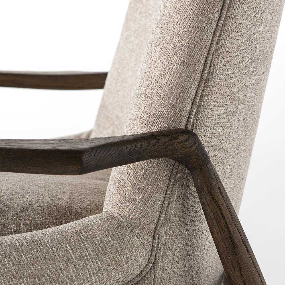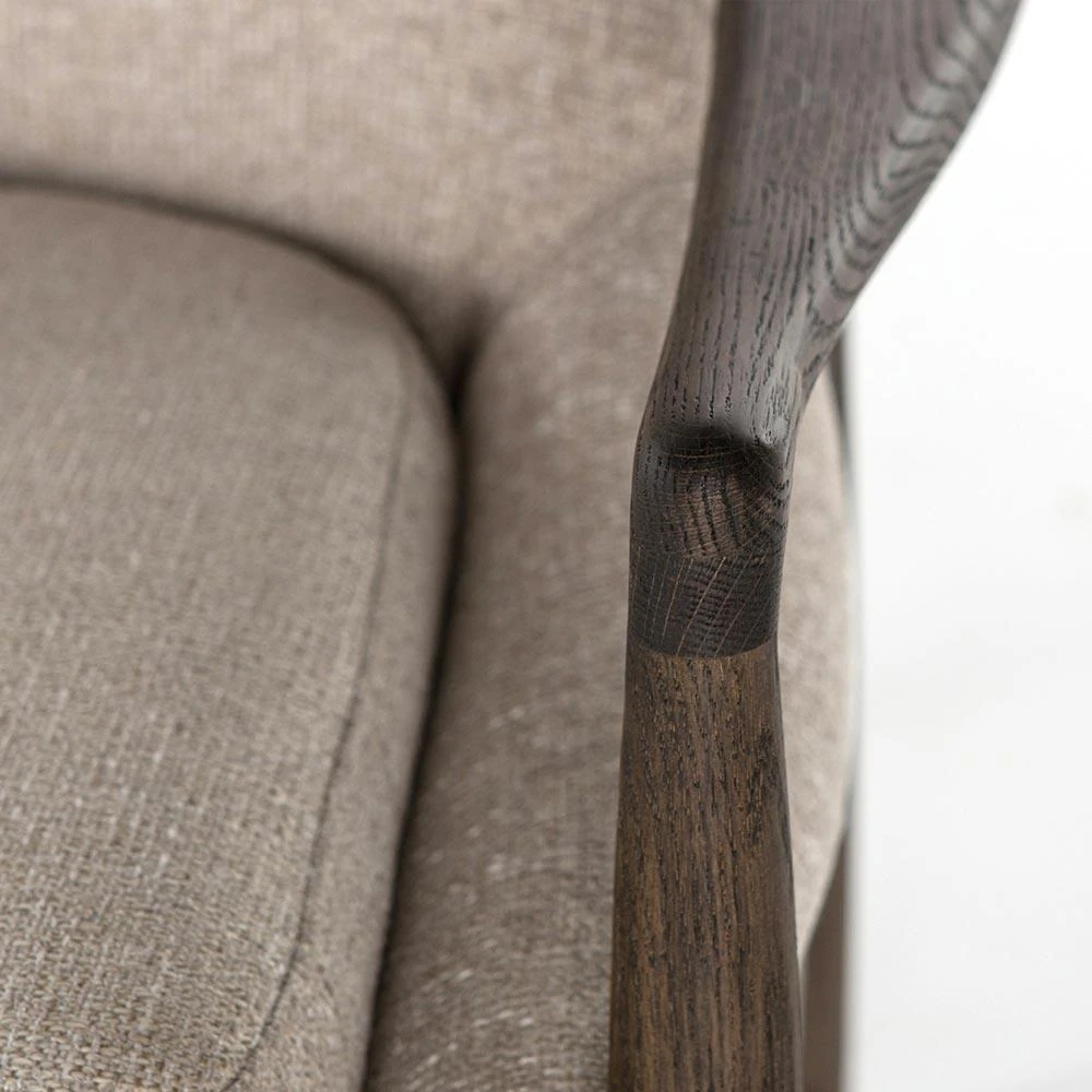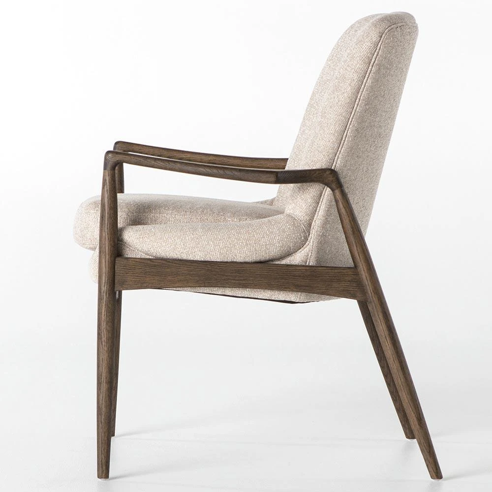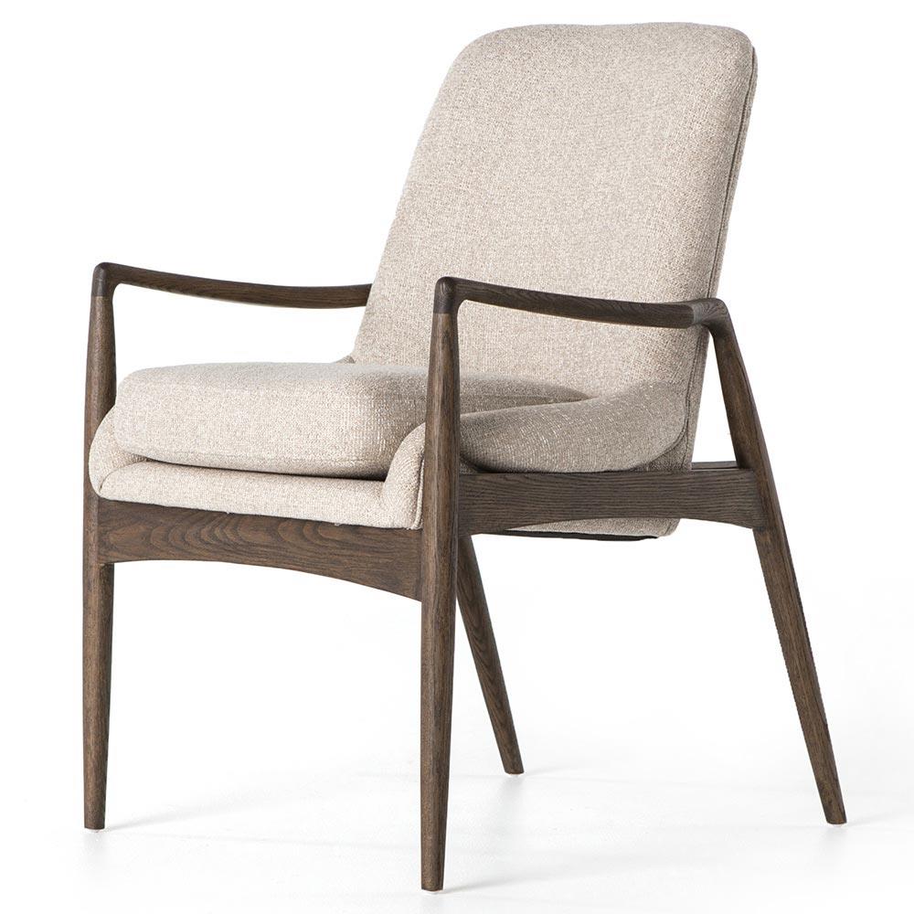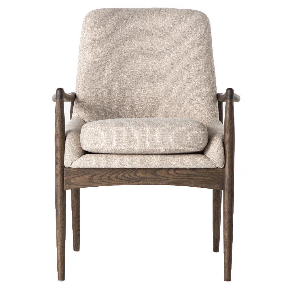 Olena Mid Century Modern Beige Upholstered Brown Wood Dining Arm Chair