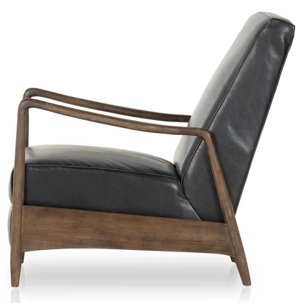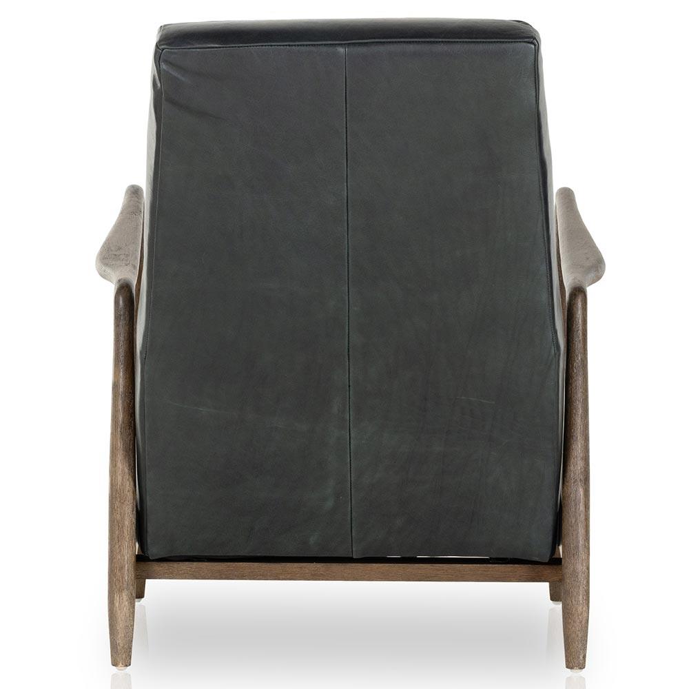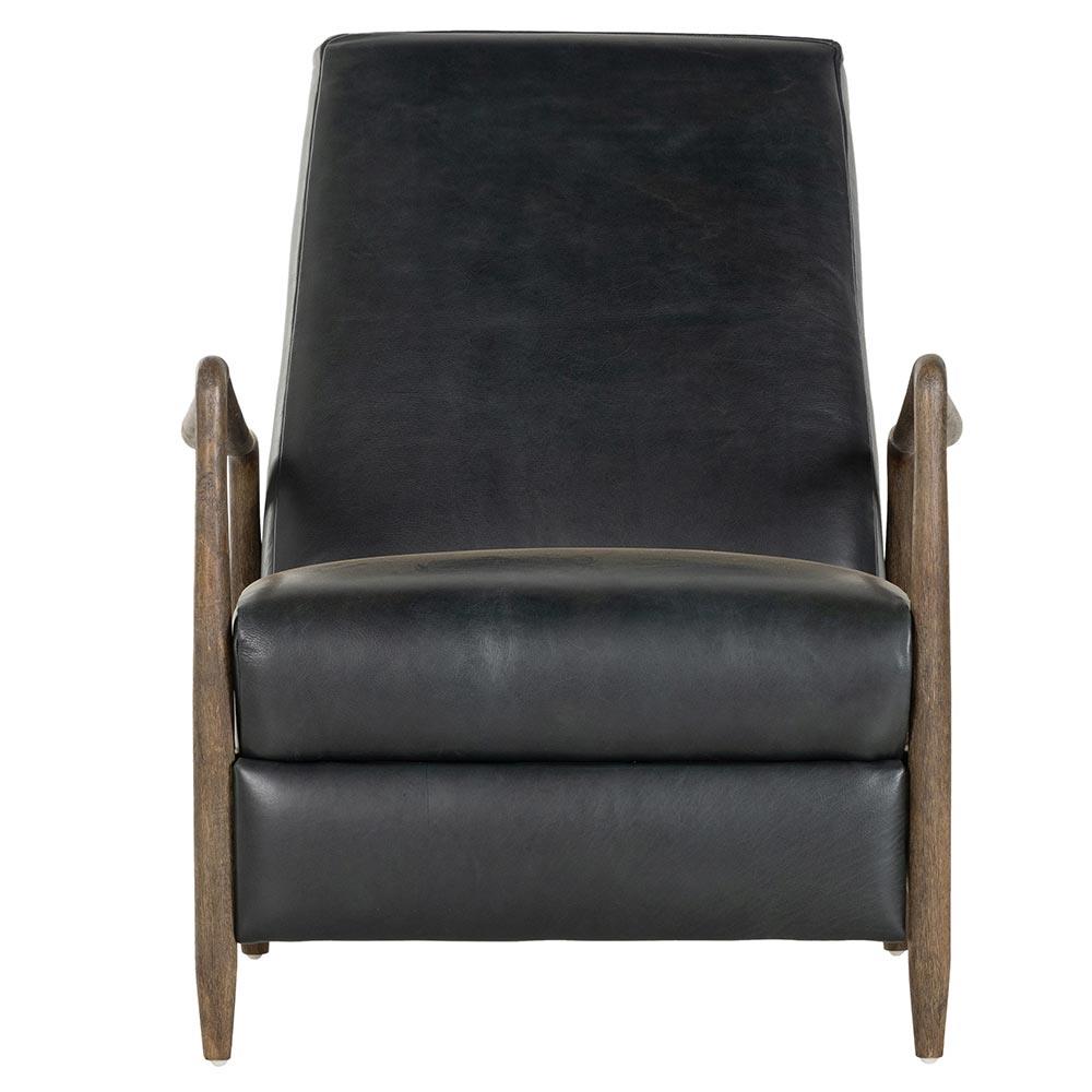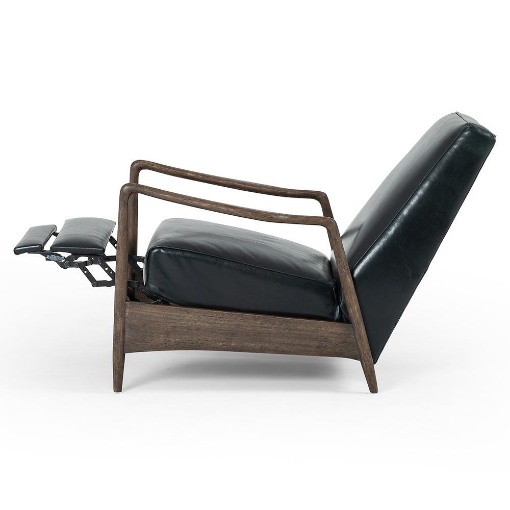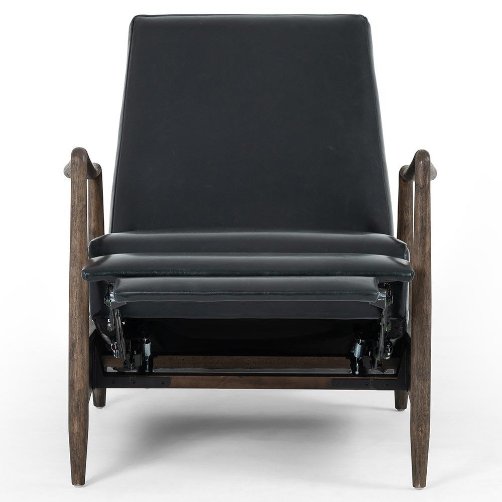 Olena Mid Century Modern Black Upholstered Leather Brown Wood Frame Recliner Arm Chair