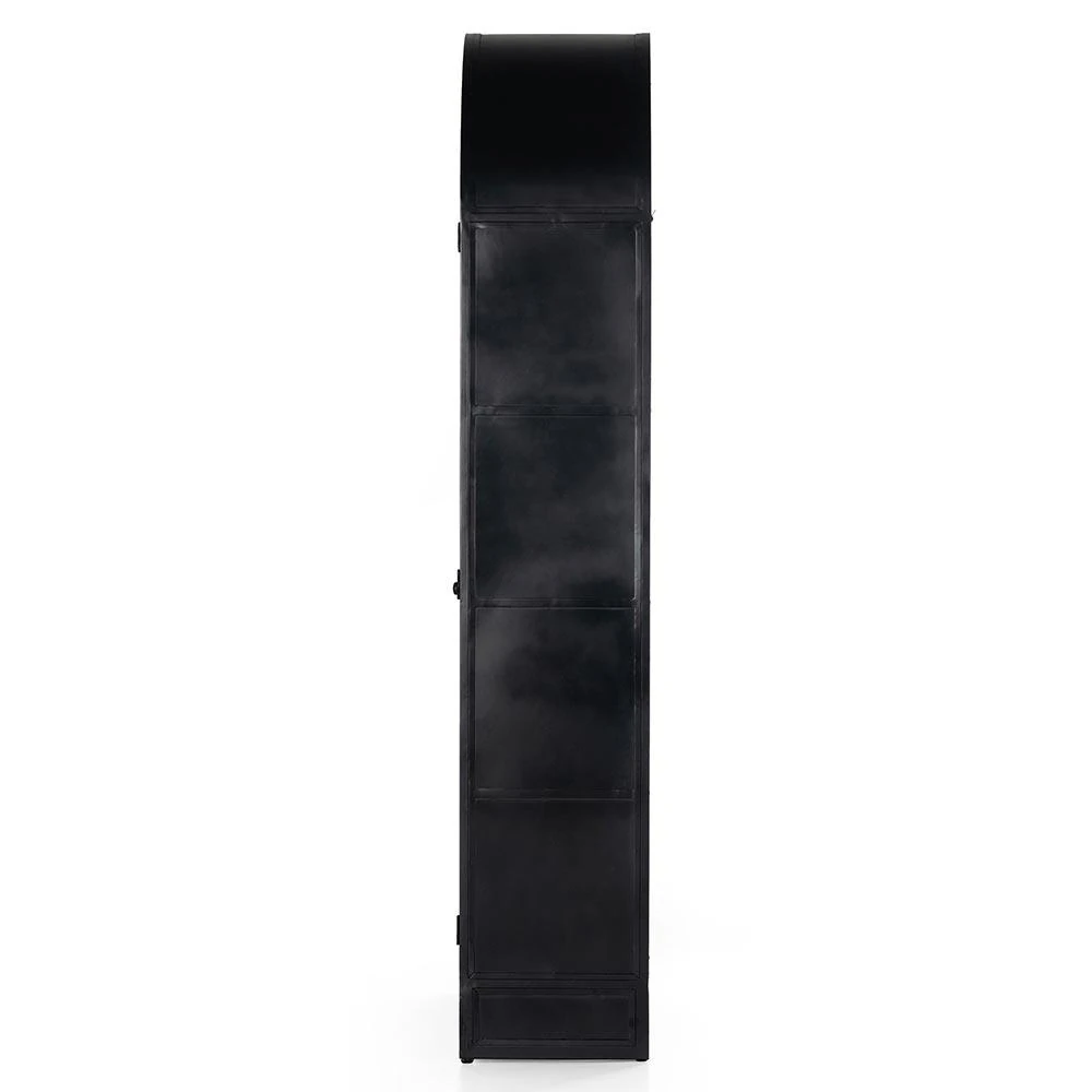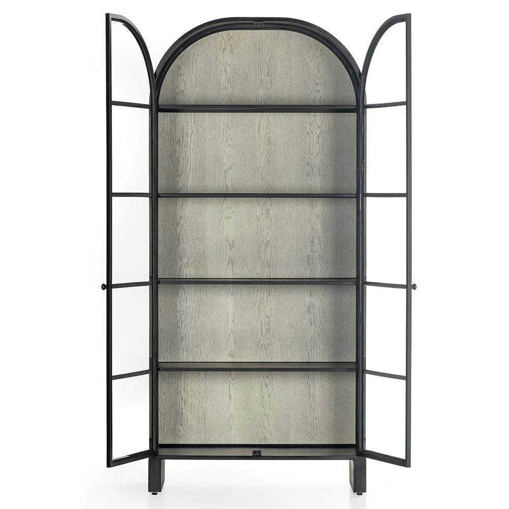 Sheila Industrial Clear Glass Black Iron Frame White Oak Curved 2 Door Display Case