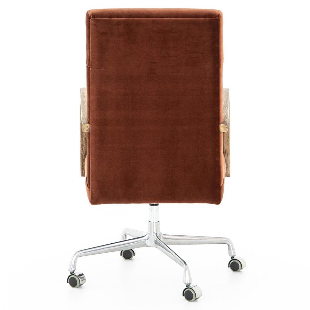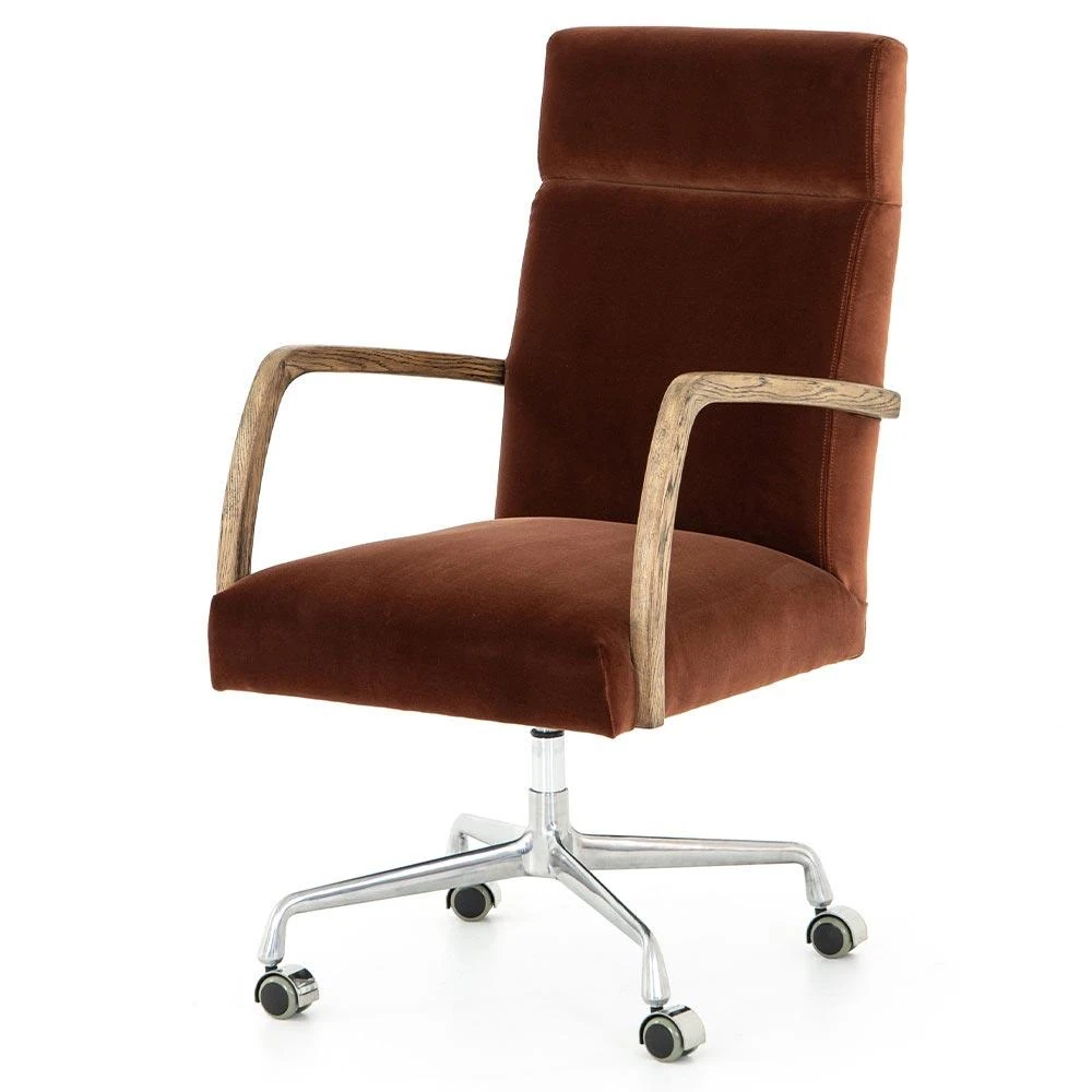 Sonn Mid Century Auburn Brown Upholstered Velvet Silver Stainless Steel Office Chair
