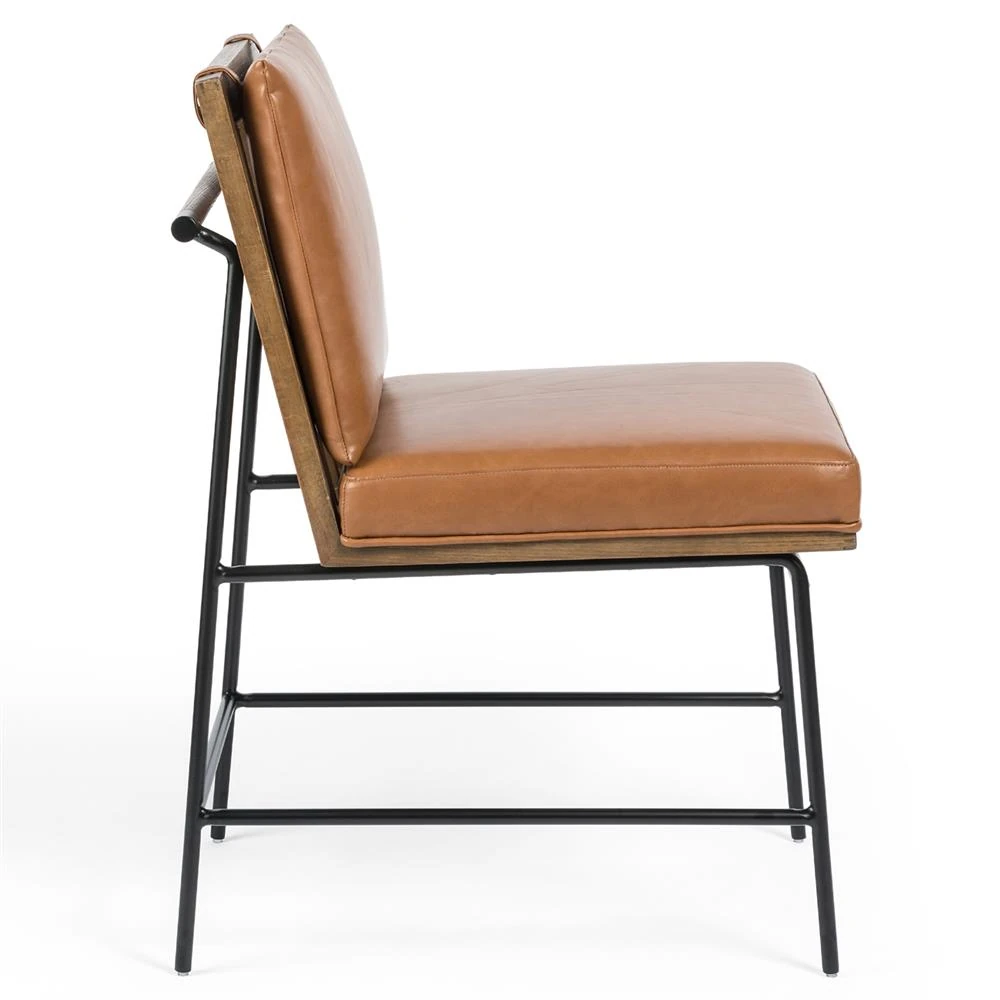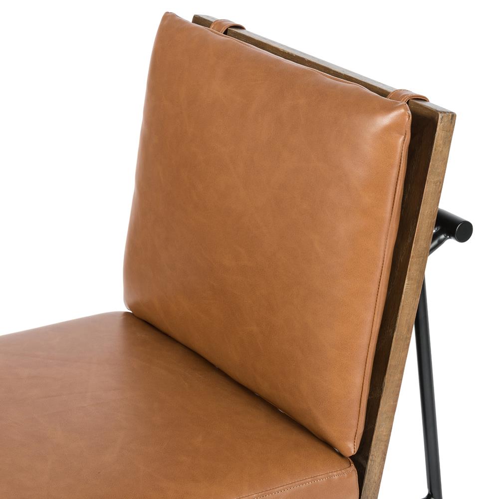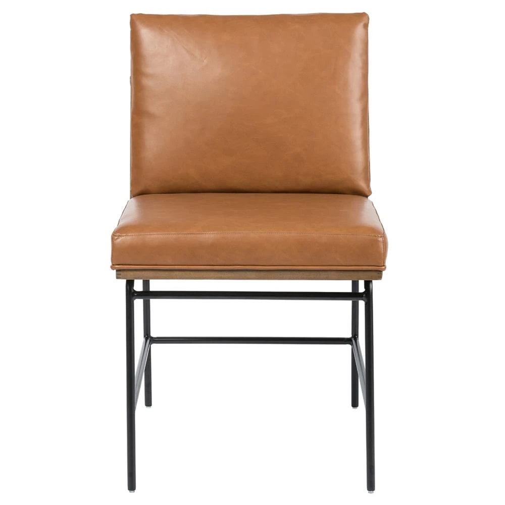 Inno Industrial Brown Faux Leather Oak Wood Black Iron Frame Dining Side Chair