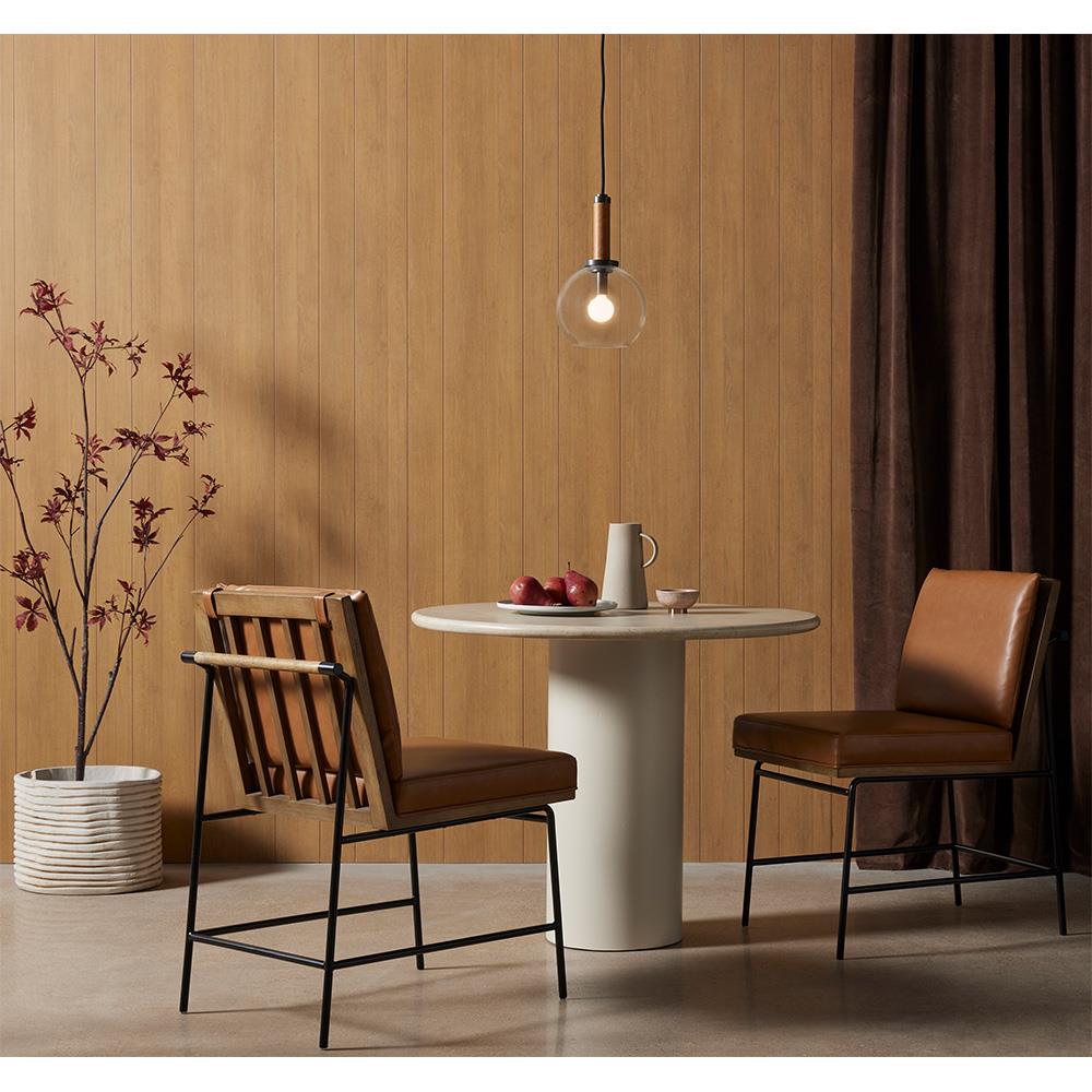 The Inno dining side chair showcases clean lines, a solid iron frame, and a butterscotch faux leather seat, infusing an industrial desi ... more