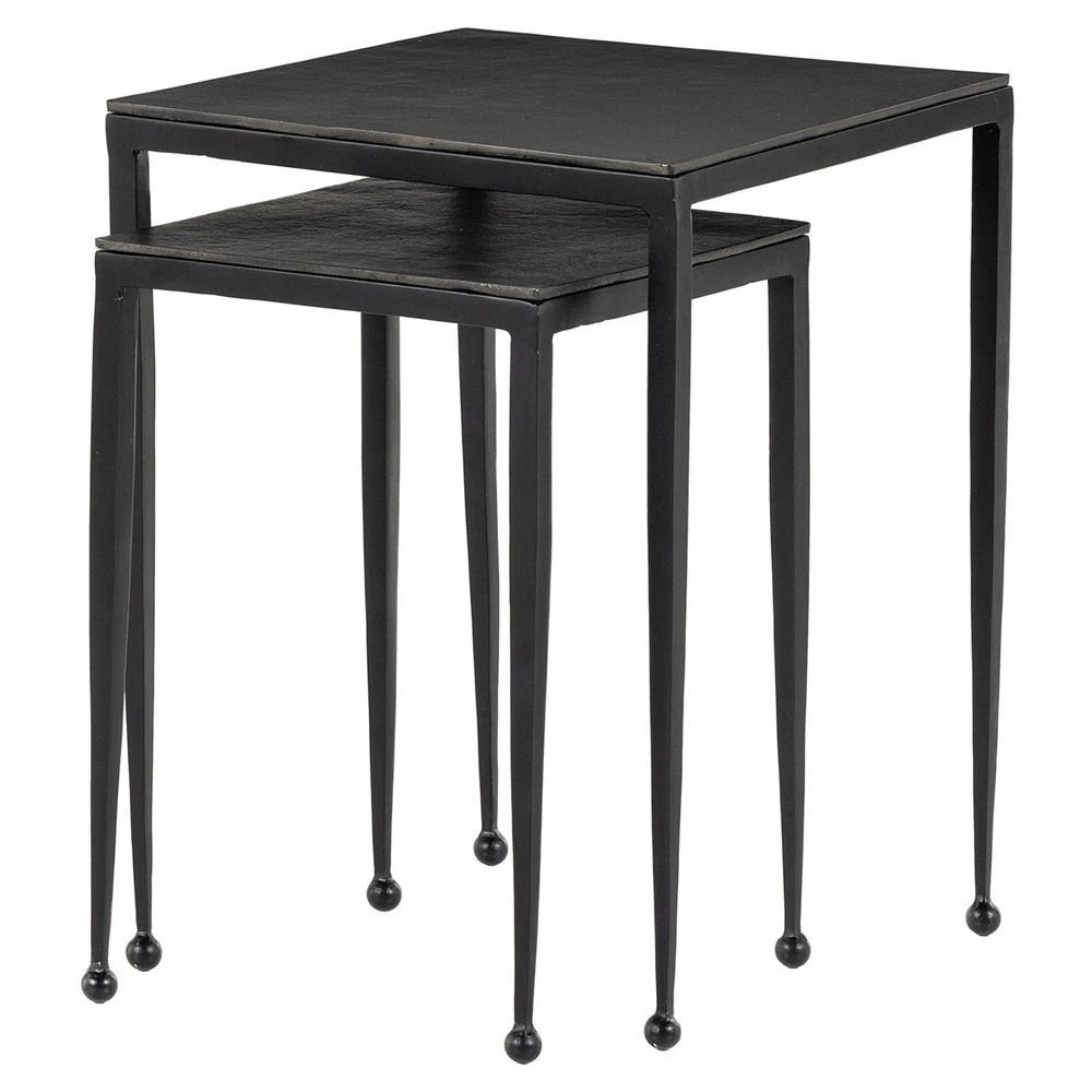Fector Industrial Black Aluminum Top Matte Iron Frame Square Nesting End Table