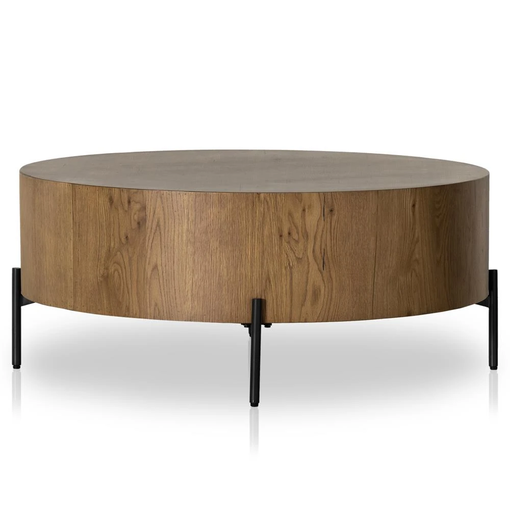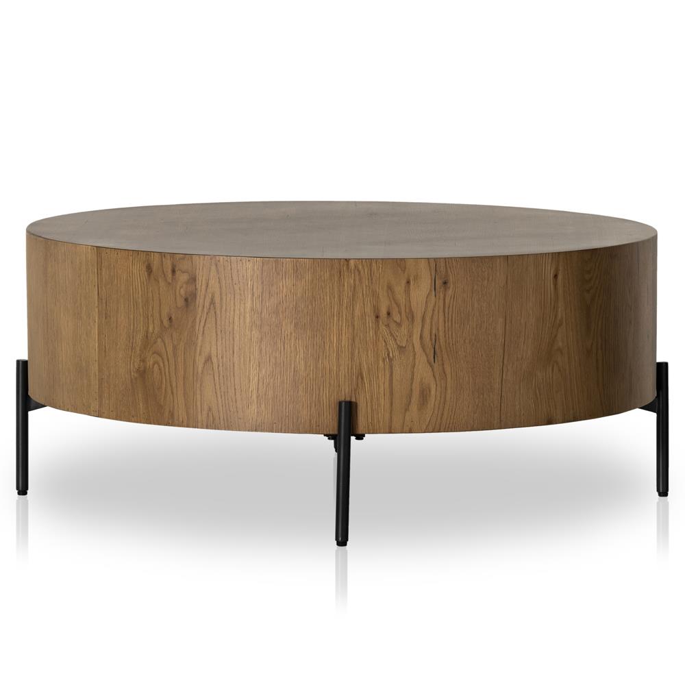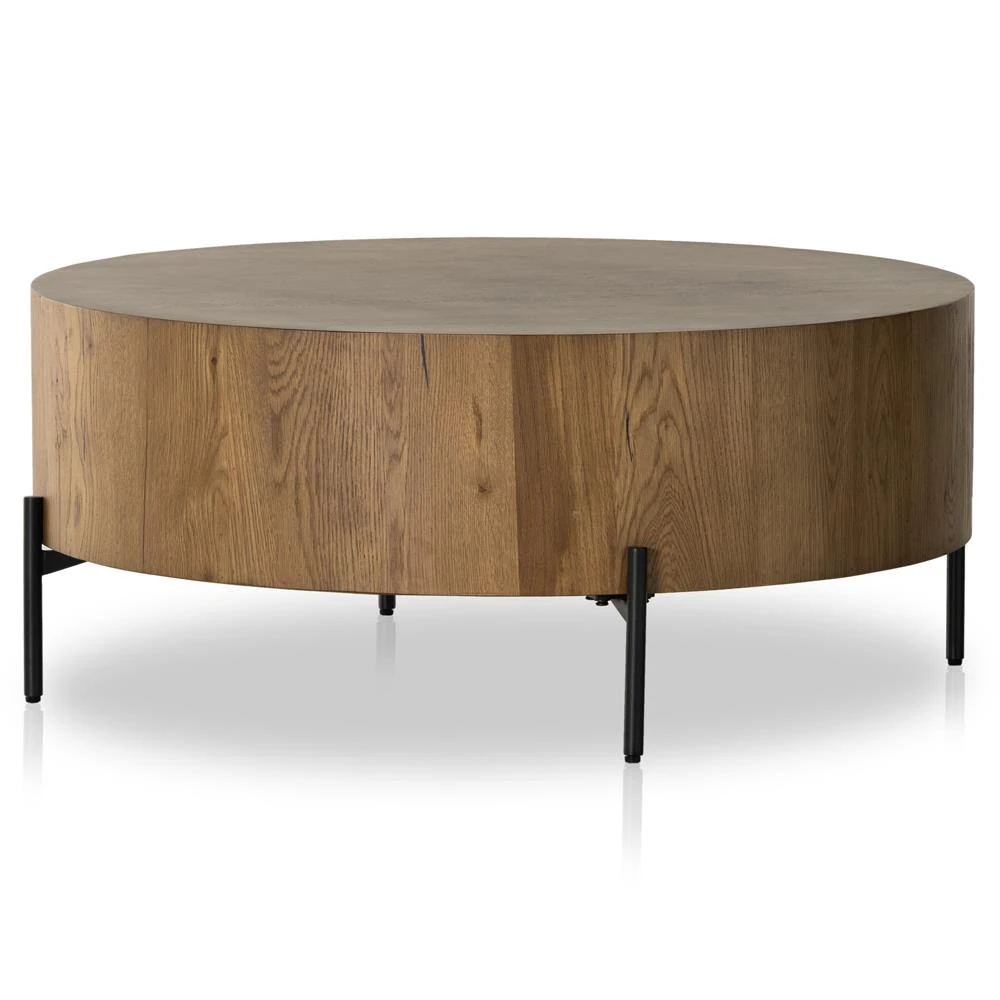 Daphne Modern Classic Light Burl Round Drum Coffee Table