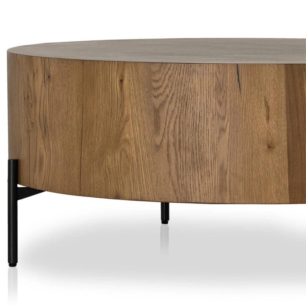 Brandon Rustic Black Iron Top Brown Oak Wood Base Round Coffee Table