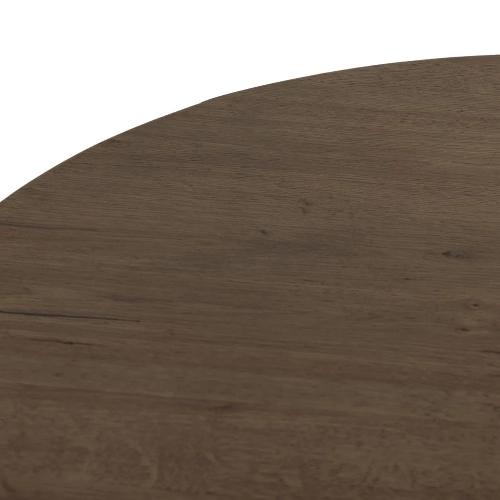 Alina Rustic Lodge Dark Brown Oak Wood Black Iron Base Round Coffee Table