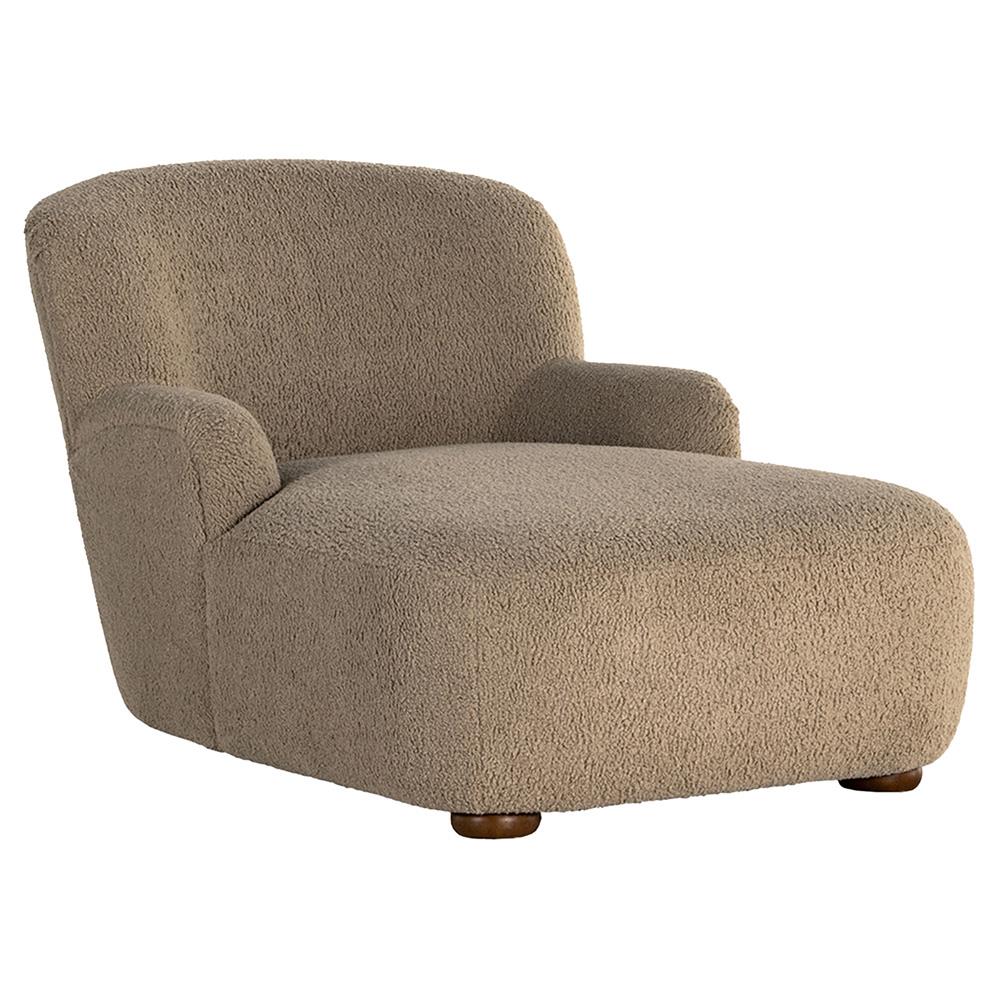 Kaden Modern Classic Brown Upholstered Boucle Wood Frame Chaise Lounge