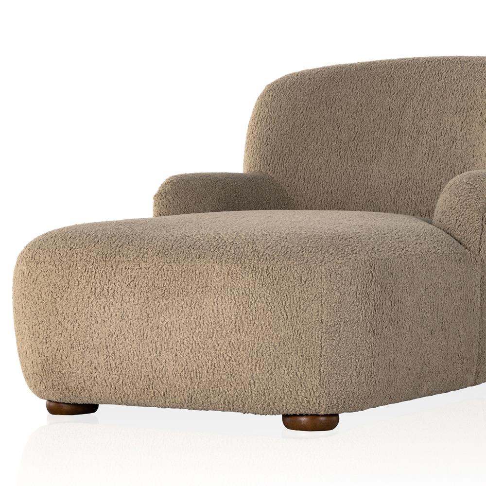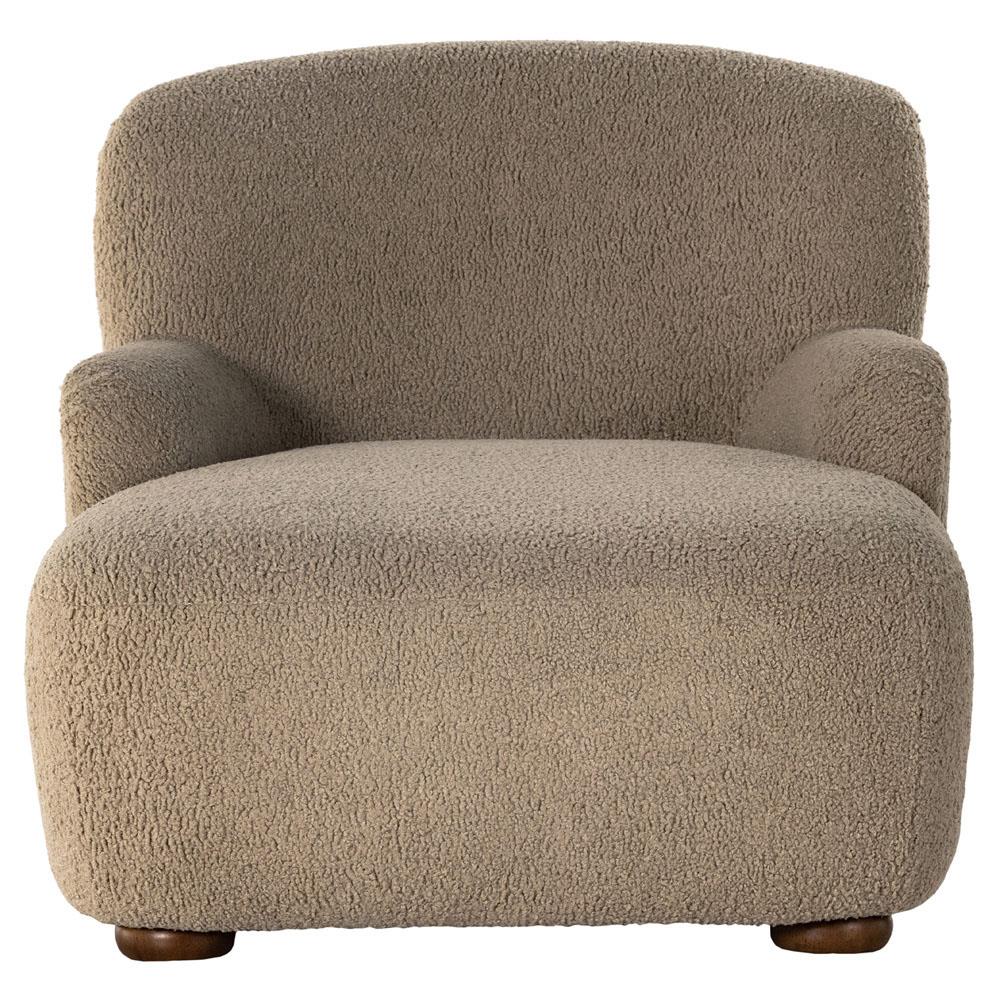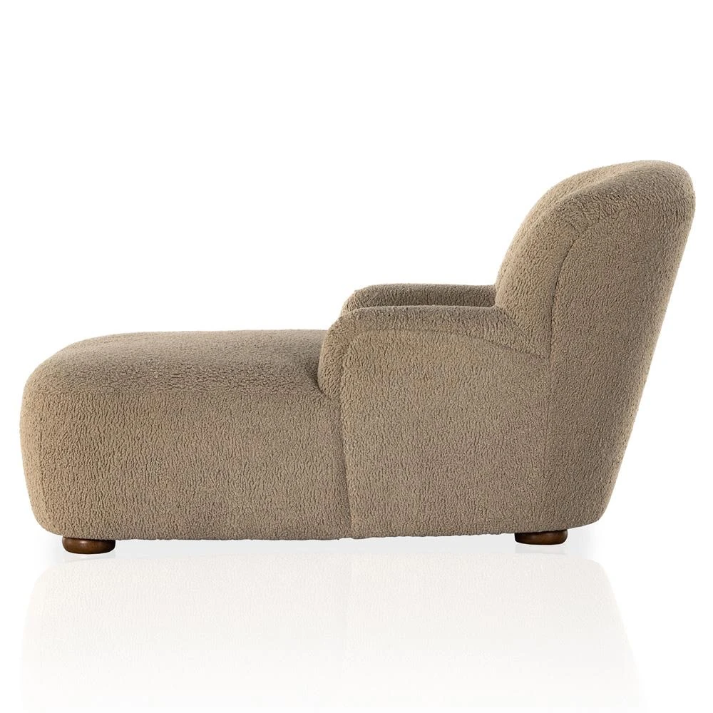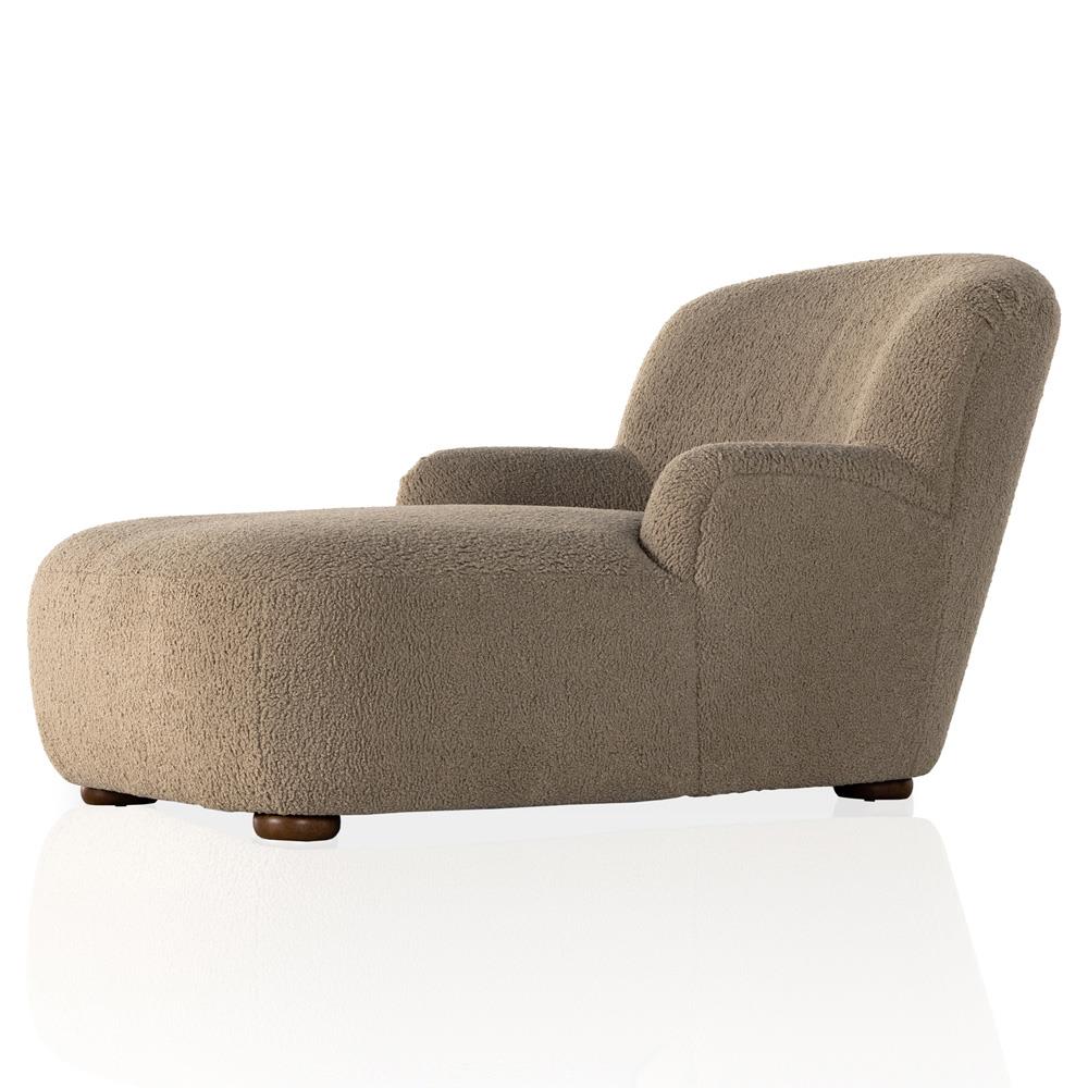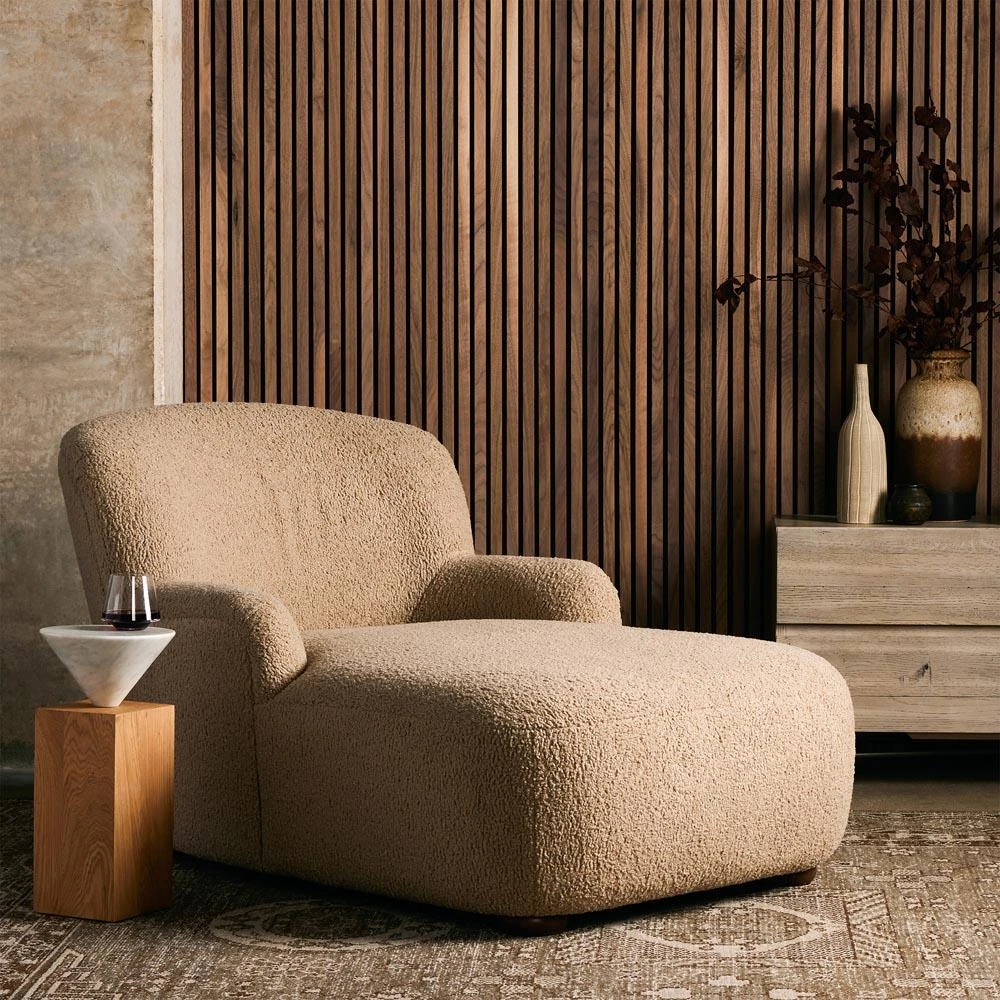 • Kaden Modern Classic Cream Upholstered Boucle Brown Wood Chaise Lounge|Kathy Kuo Home