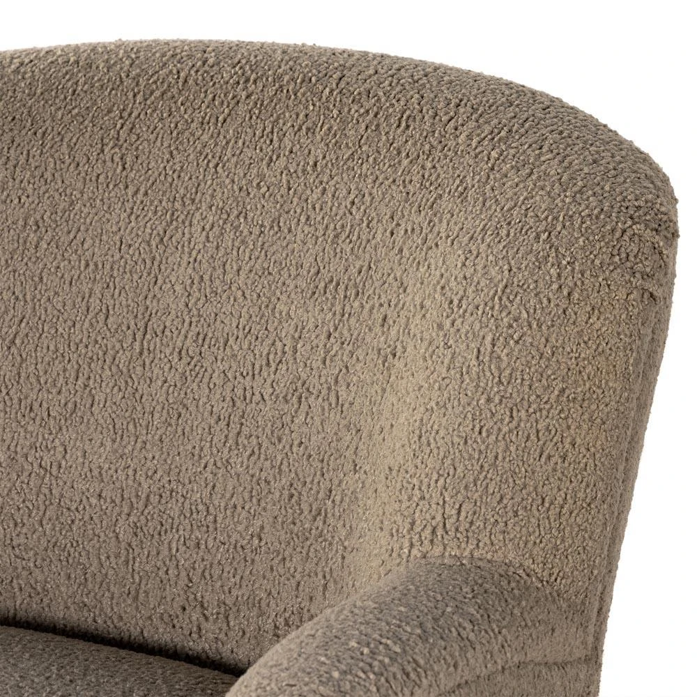 • Kaden Modern Brown Upholstered Boucle Wood Frame Wingback Swivel Arm Chair|Kathy Kuo Home