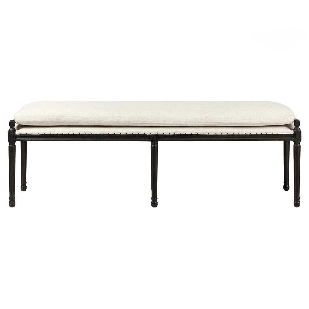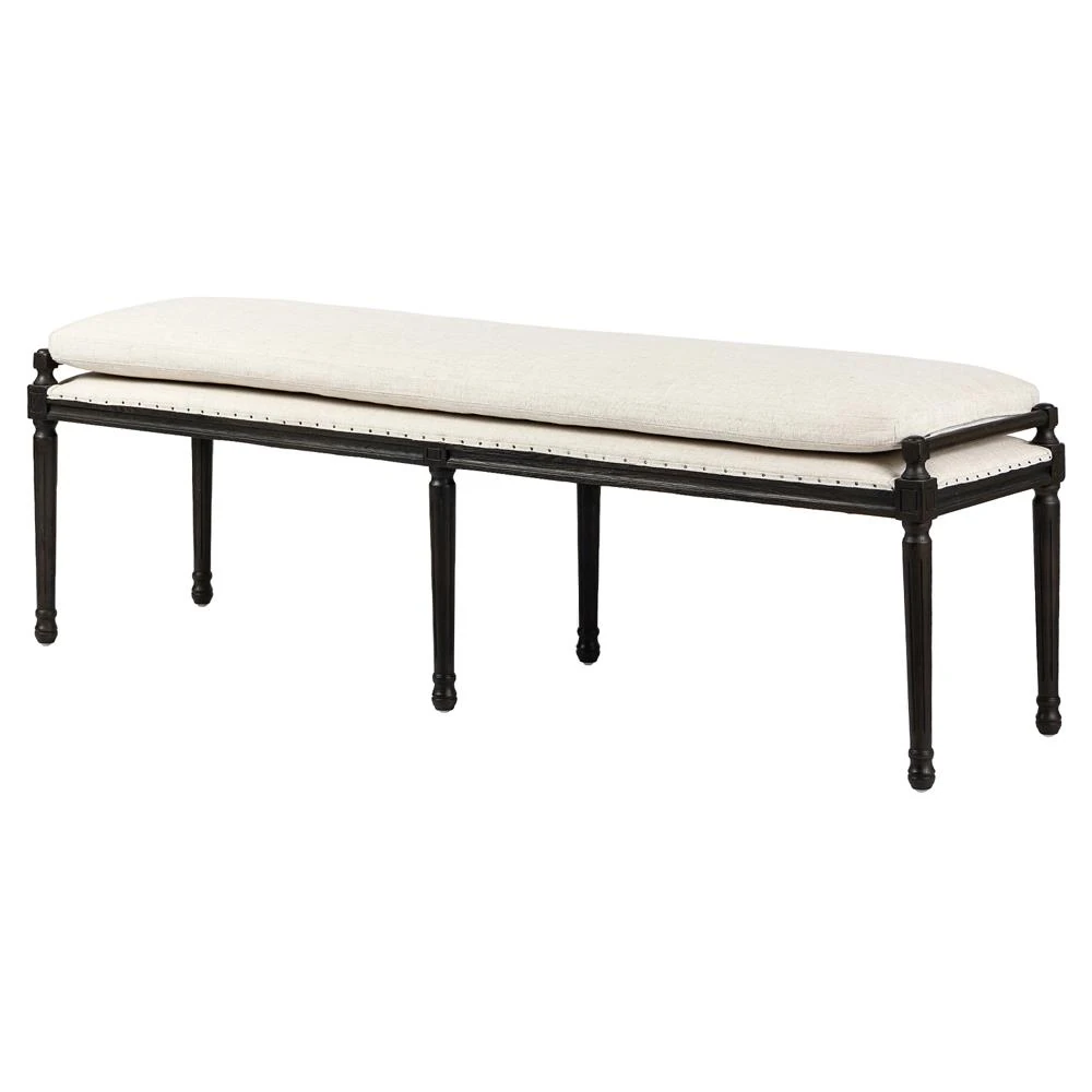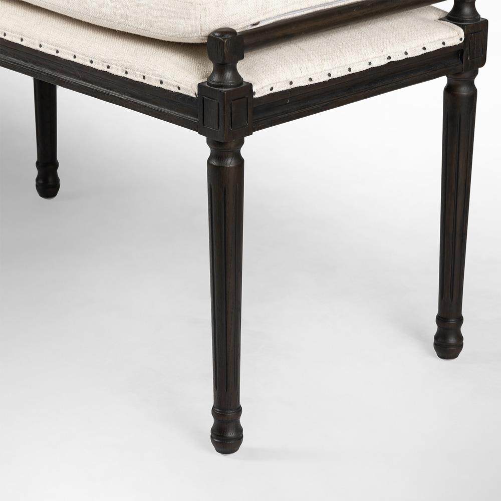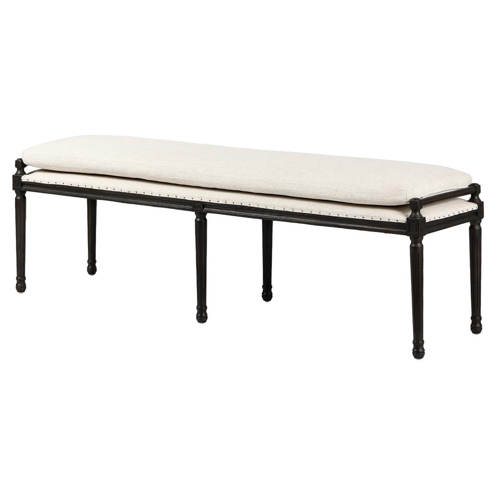 • Krish French Country Off White Performance Boucle Brown Wood Dining Bench|Kathy Kuo Home