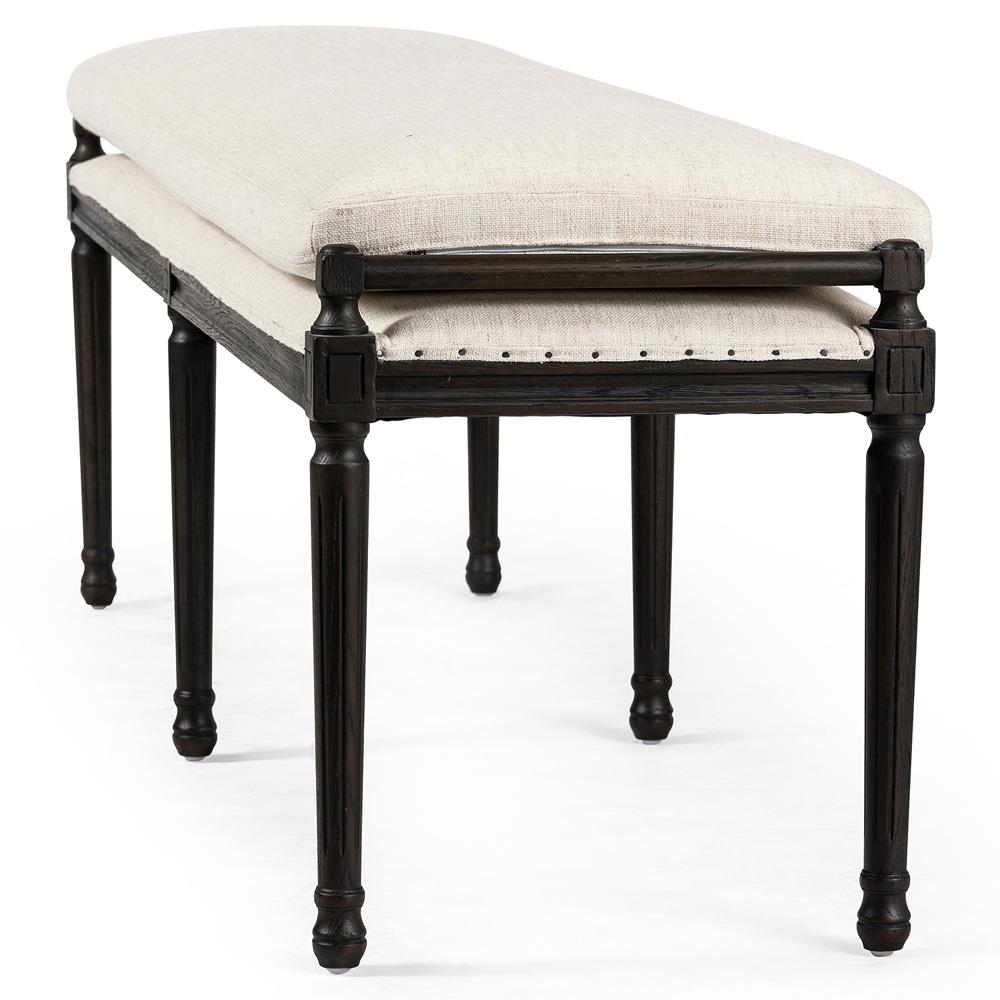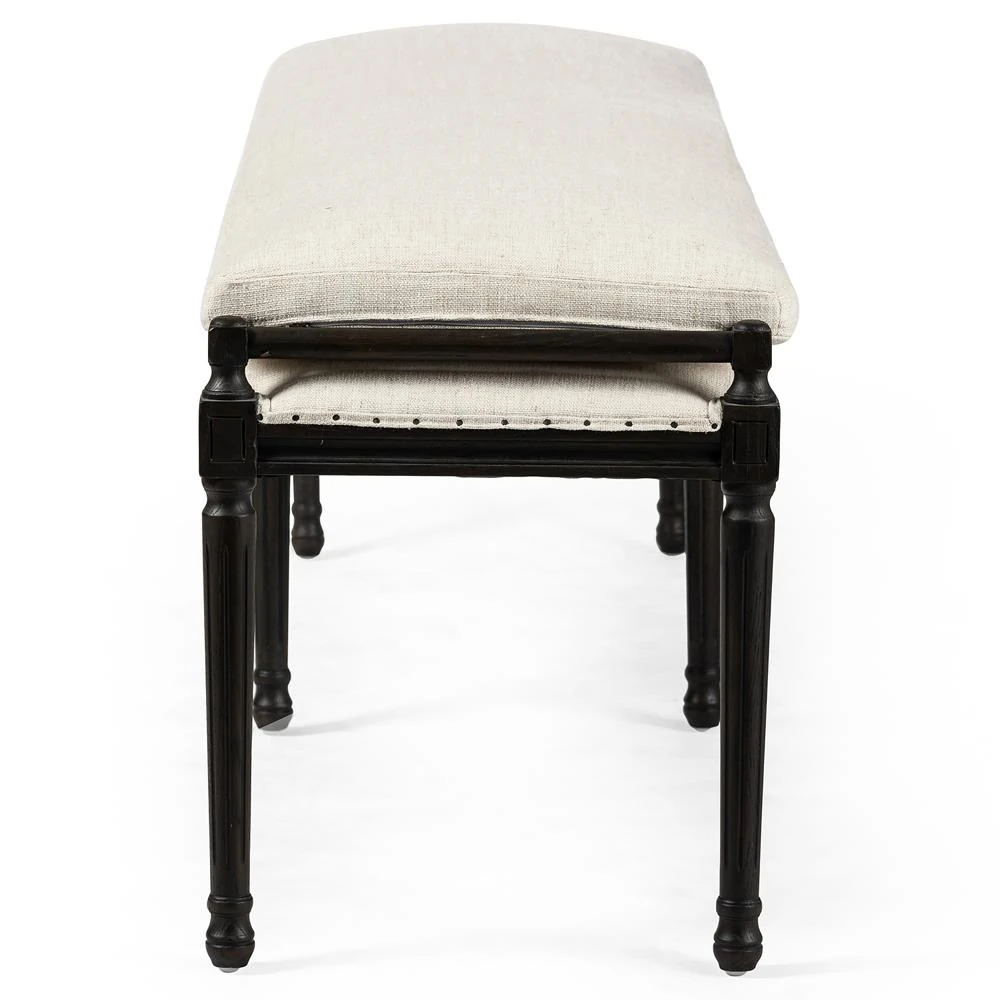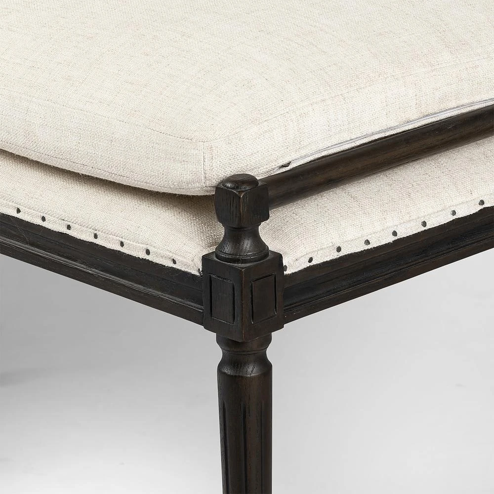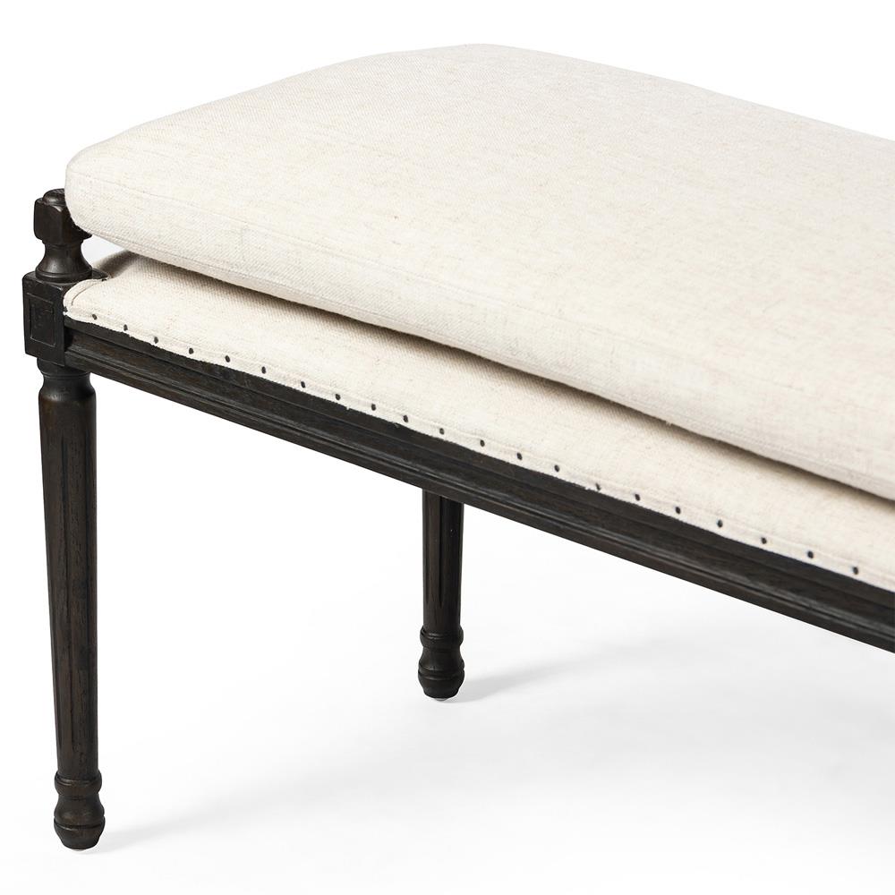 Lucy French Cream Performance Dark Brown Oak Nailhead Trim Dining Bench