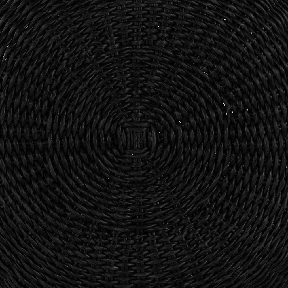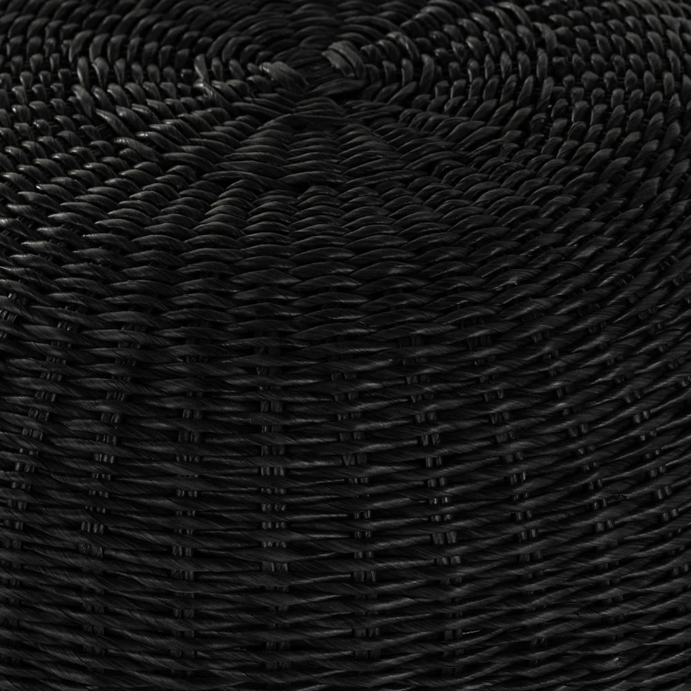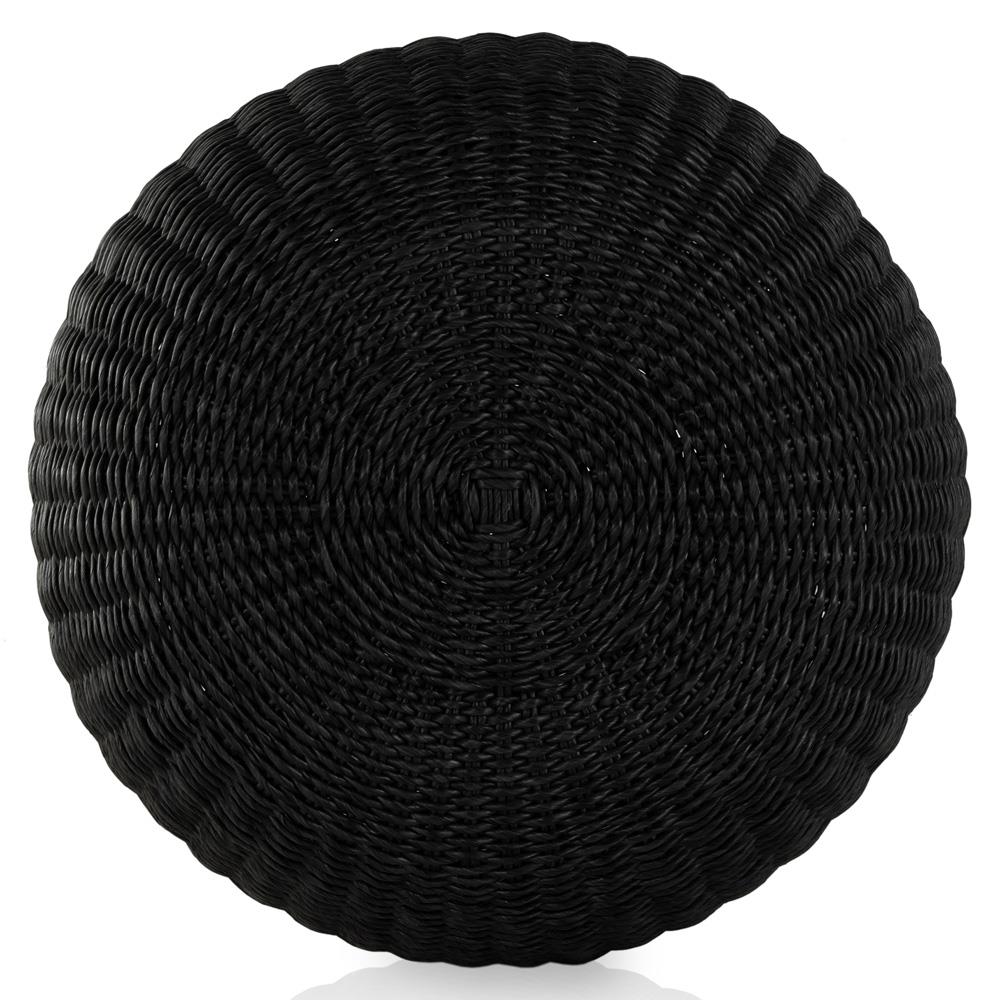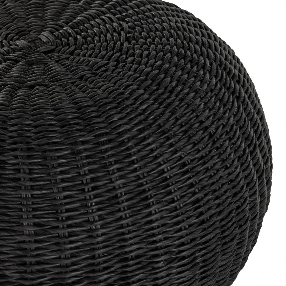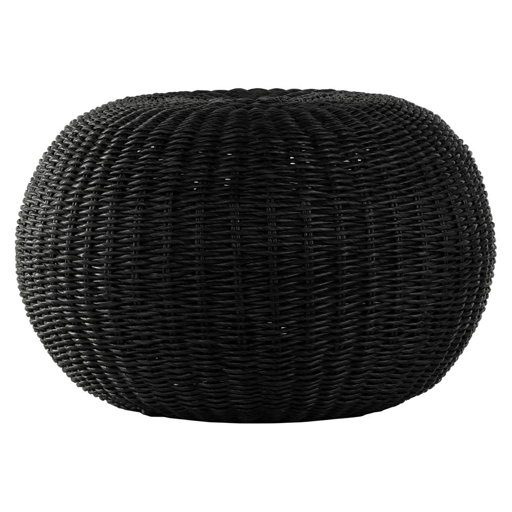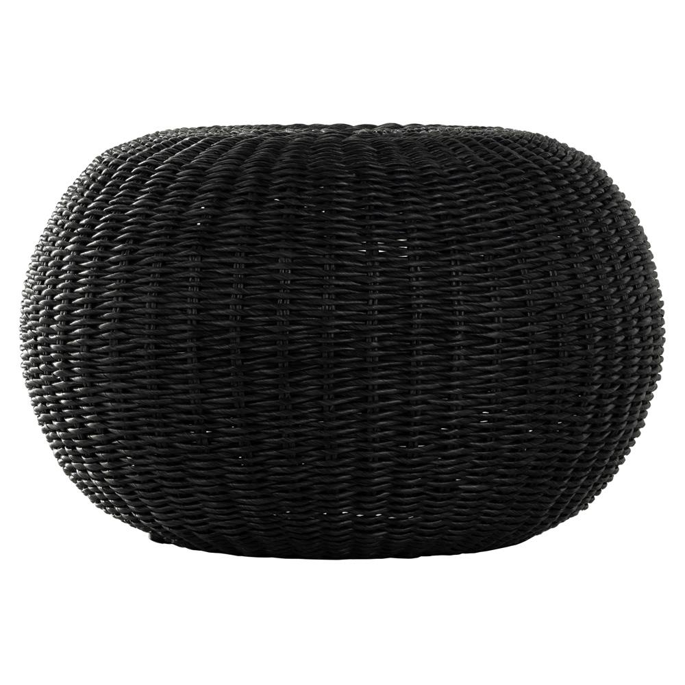 Airah Coastal Beach Black Woven Wicker Round Outdoor Ottoman