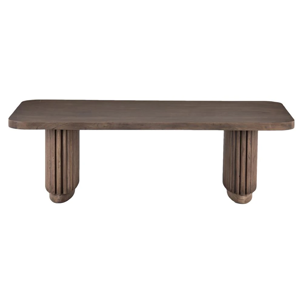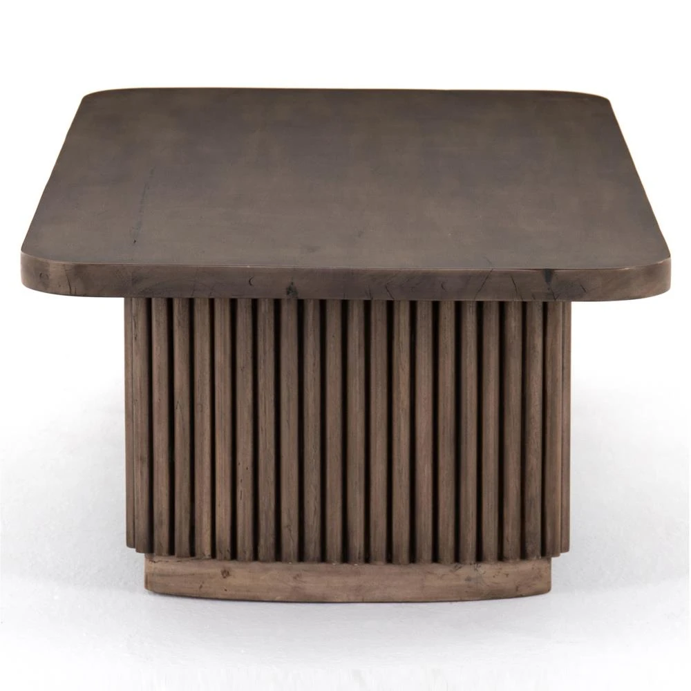 • Features rounded rectangular top and pedestal legs with vertical reeding atop a sleek plinth base