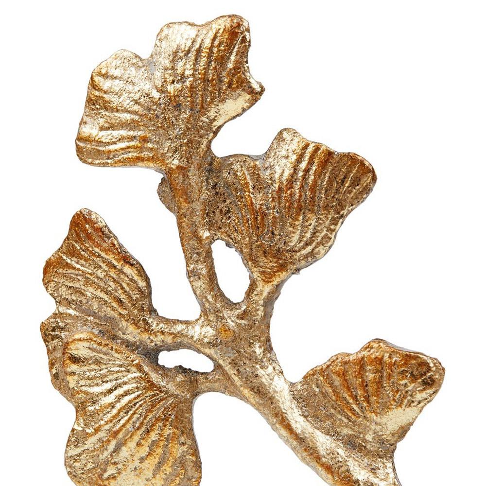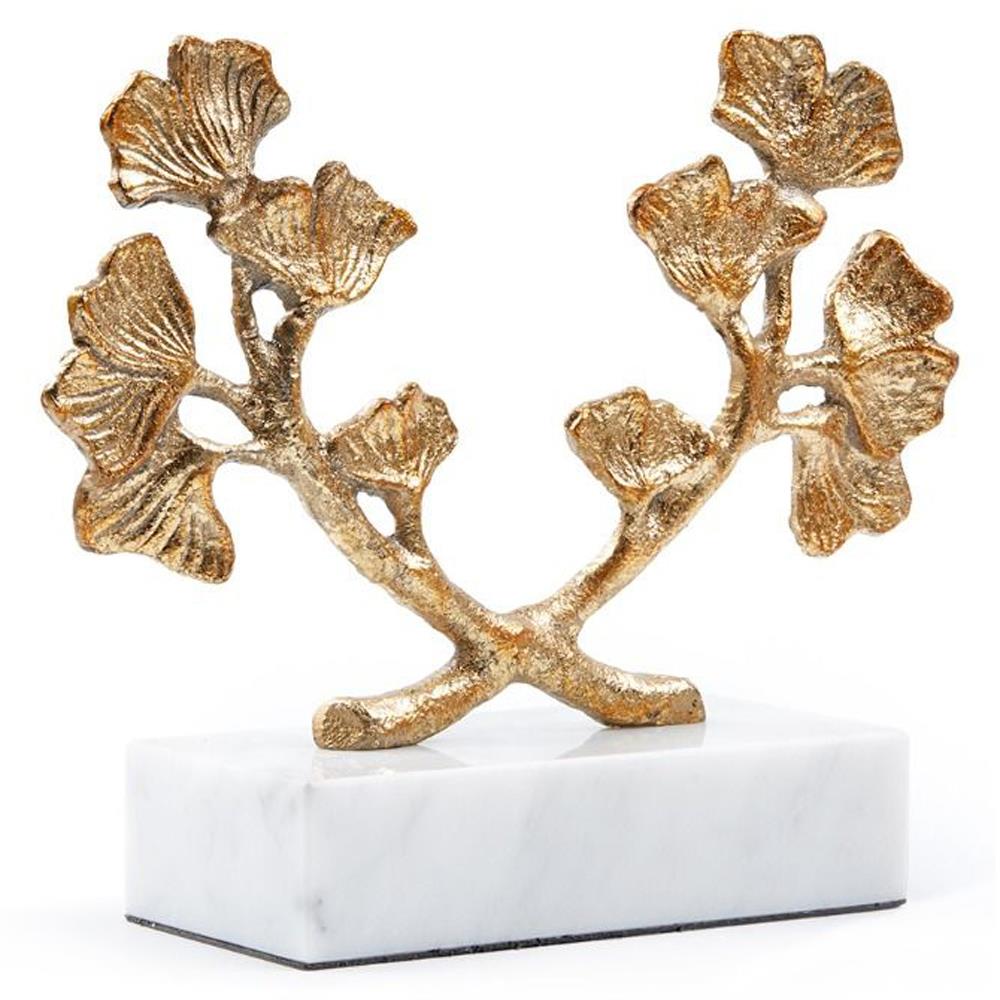 Ginko Regency Gold Iron Leaves White Marble Base Sculpture