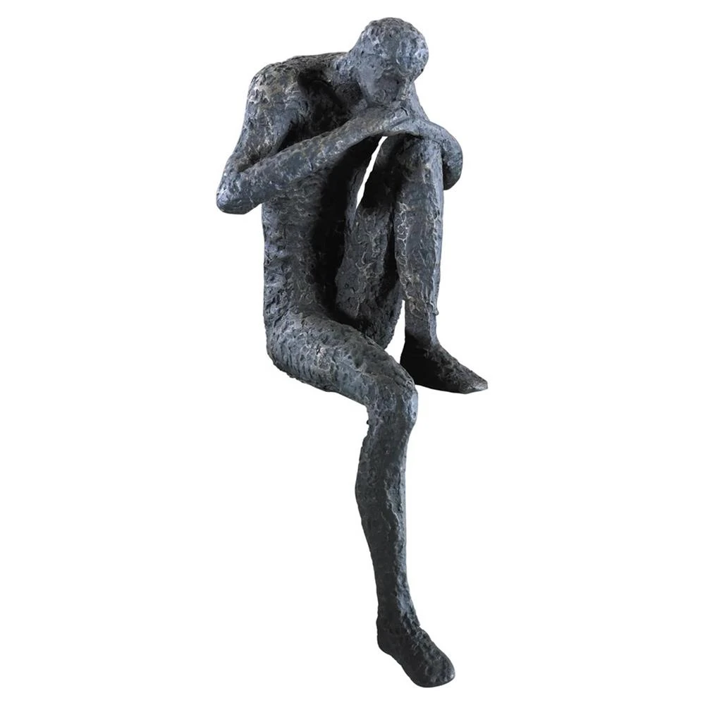 Von Industrial Loft Black Cast Iron Thinking Man Figurine