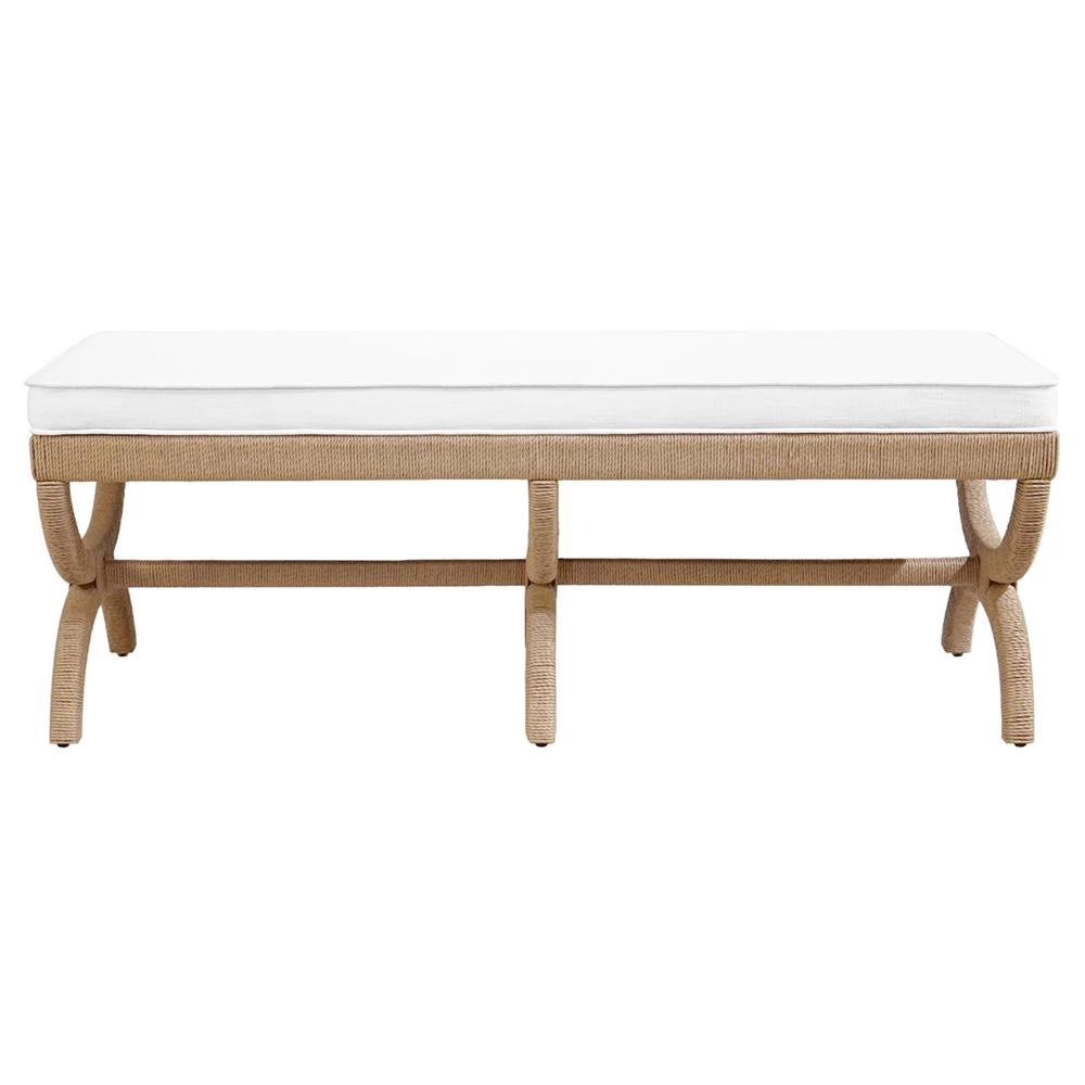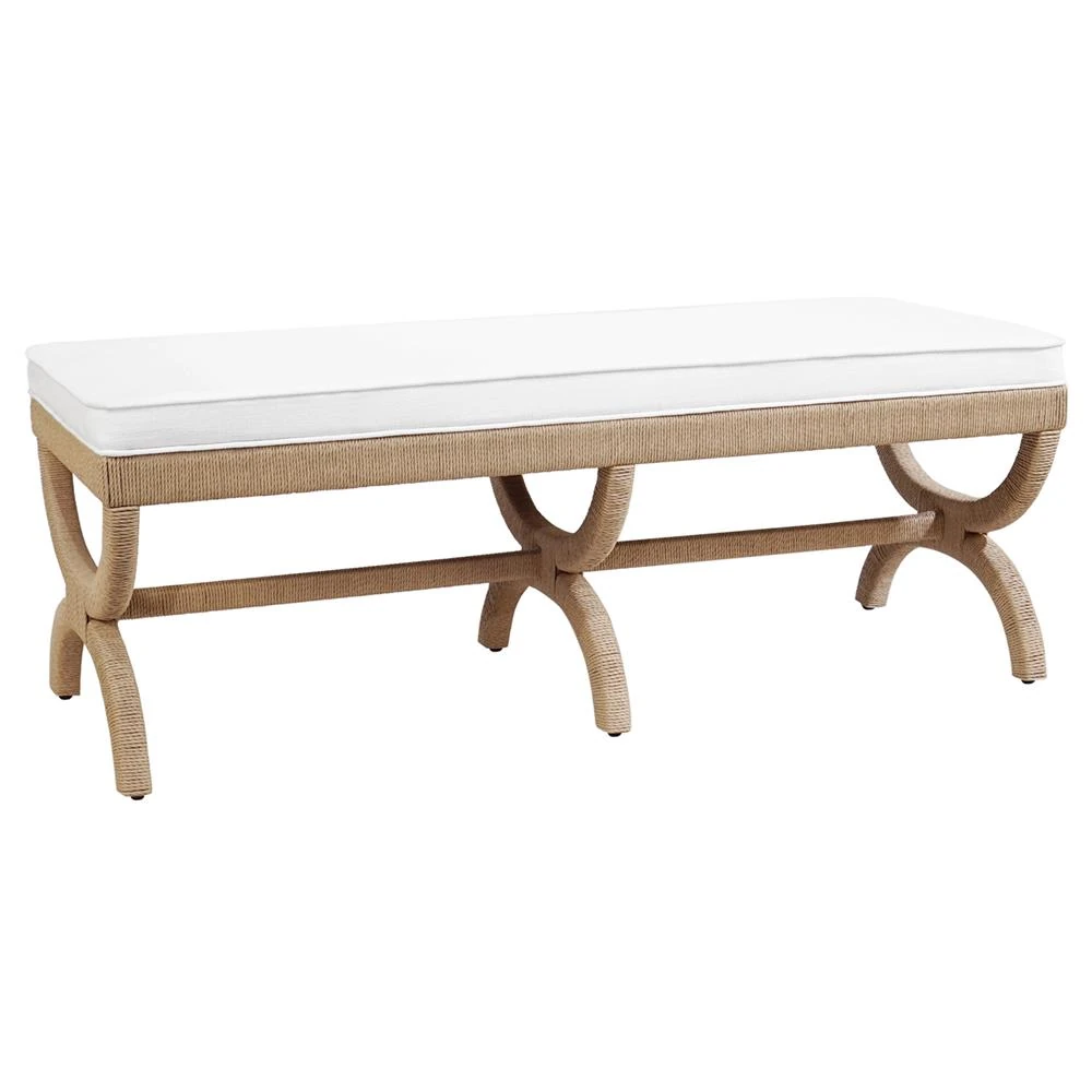 Worlds Away Xanadu Coastal Beach White Upholstered Natural Rope Entryway Bench