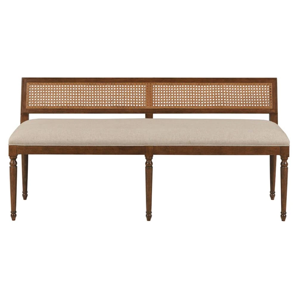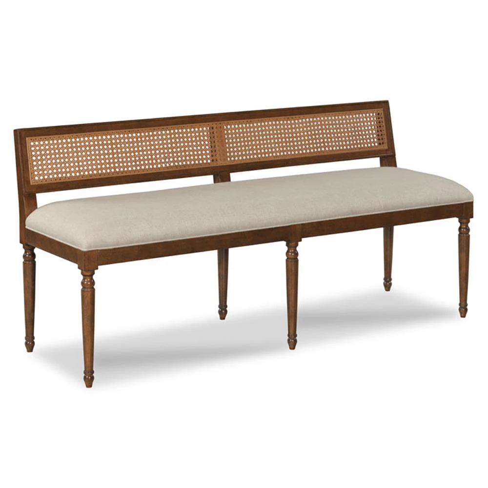 Colette French Beige Upholstered Linen Woven Cane Brown Wood Dining Bench