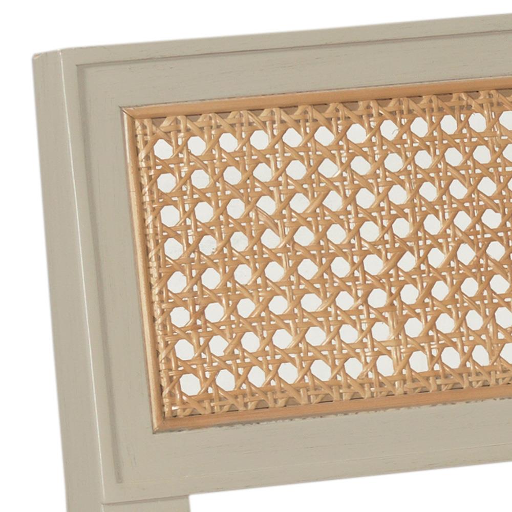 Colette French Beige Upholstered Linen Woven Cane Wood Frame Dining Bench