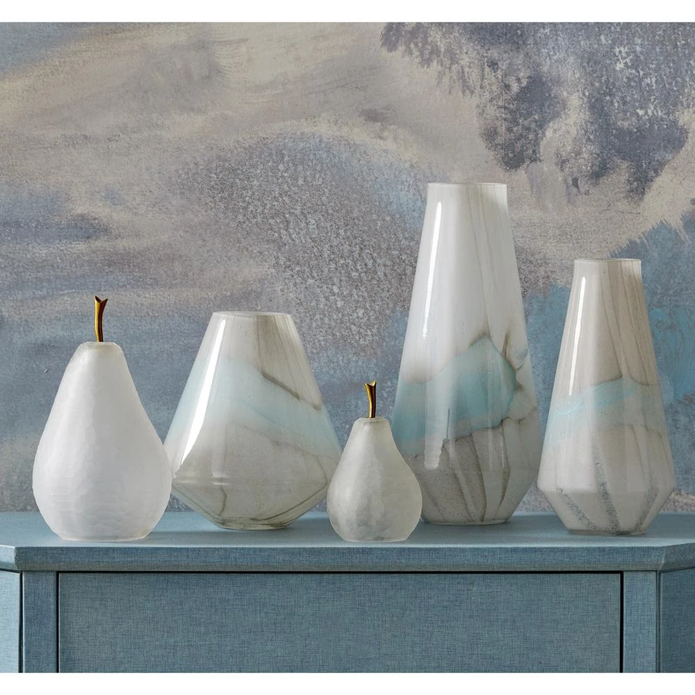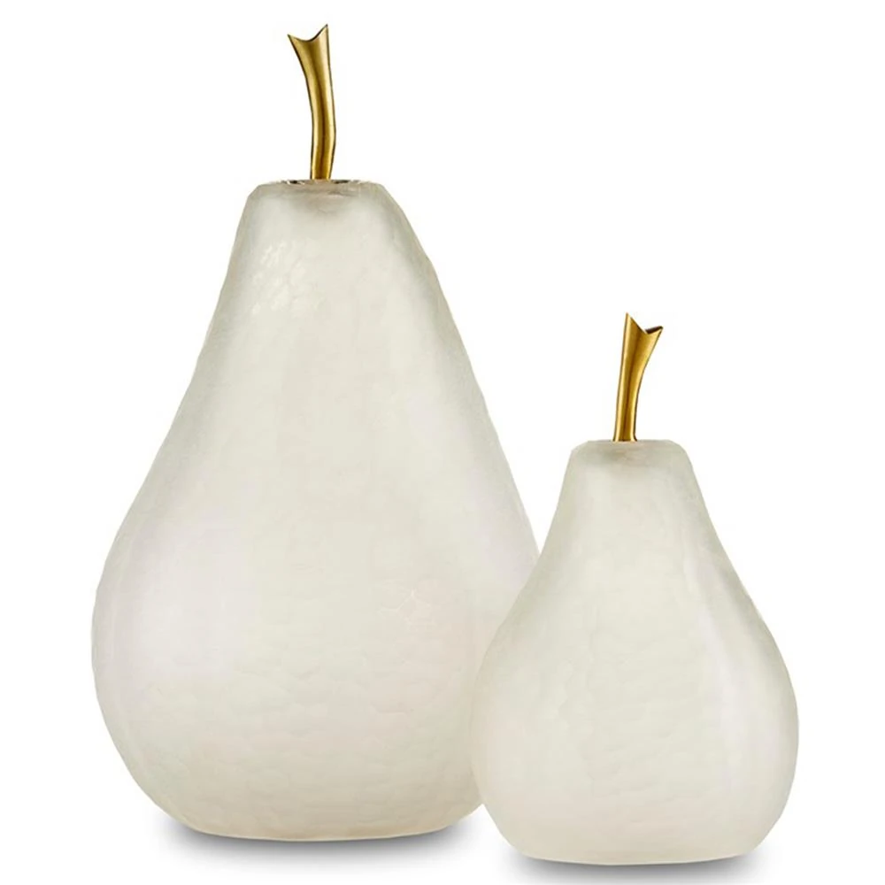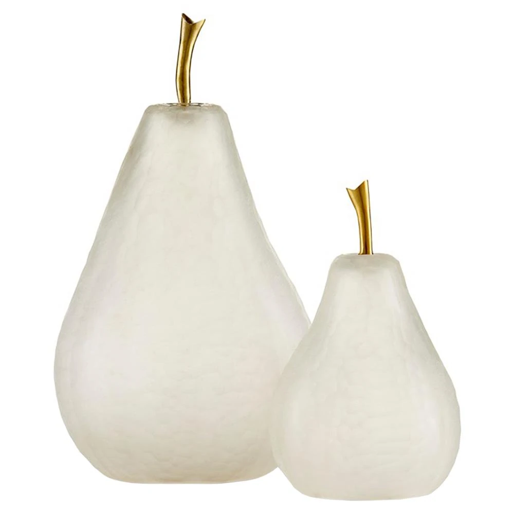 Pome Hollywood Regency White Frosted Glass Gold Accent Pear Figurine - Set of 2