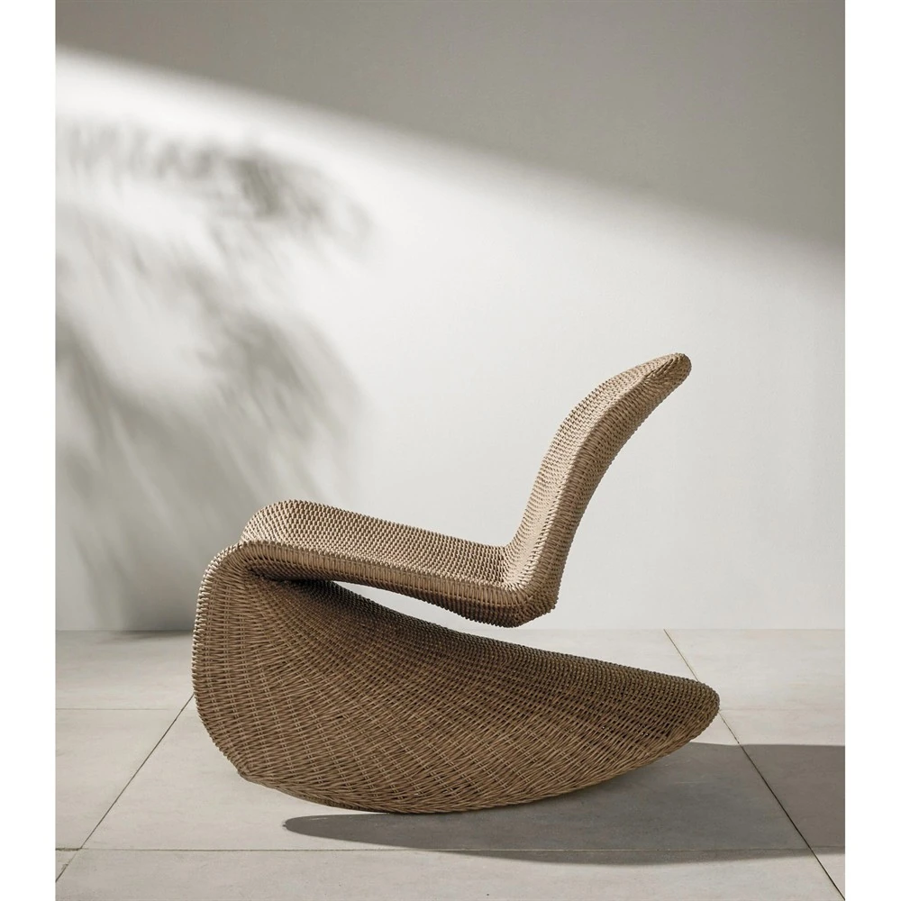 • Nikka Coastal Beach Stained Brown Wicker Outdoor Lounge Chair|Kathy Kuo Home