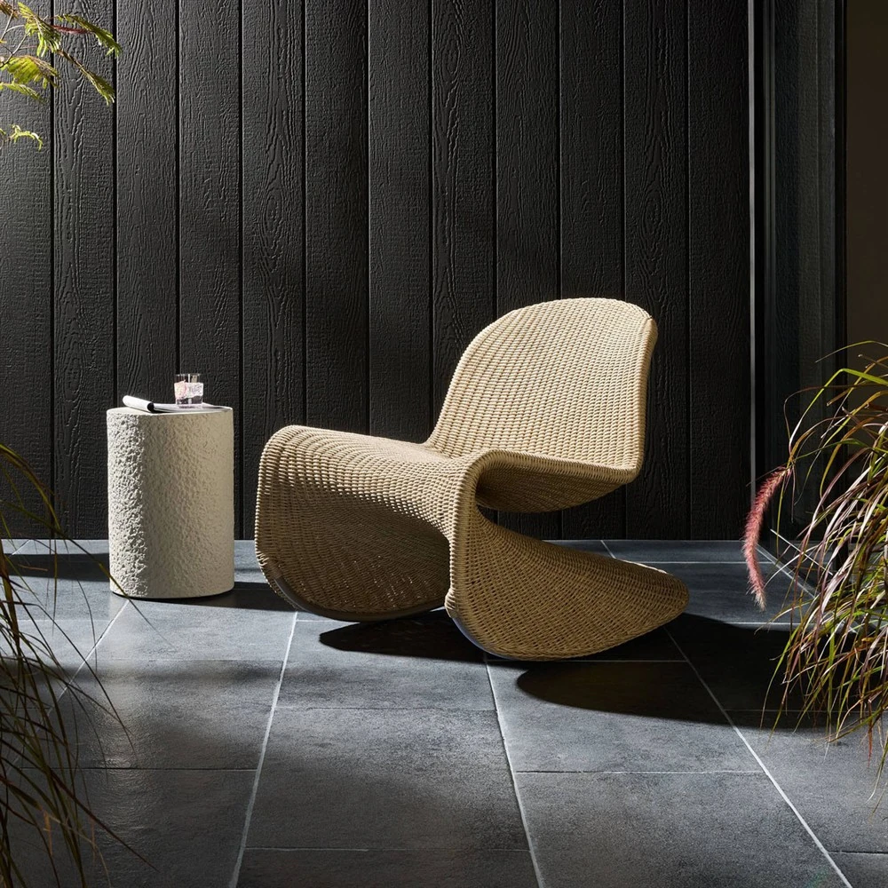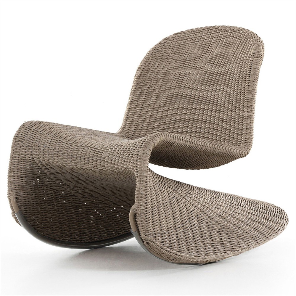 Ivanna Coastal Beach Beige Woven Wicker Outdoor Rocking Chair