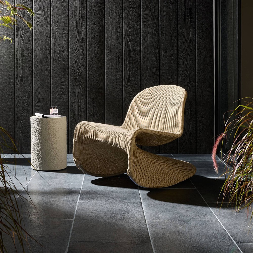 Ensure that your outdoor living space is serene and comfortable with our Ivanna Coastal Beach Beige Woven Wicker Outdoor Rocking Chair. ... more