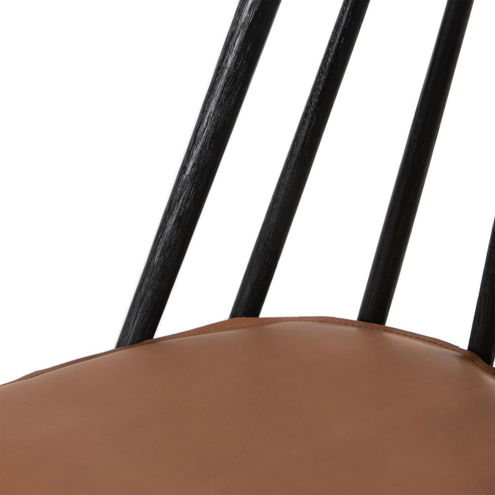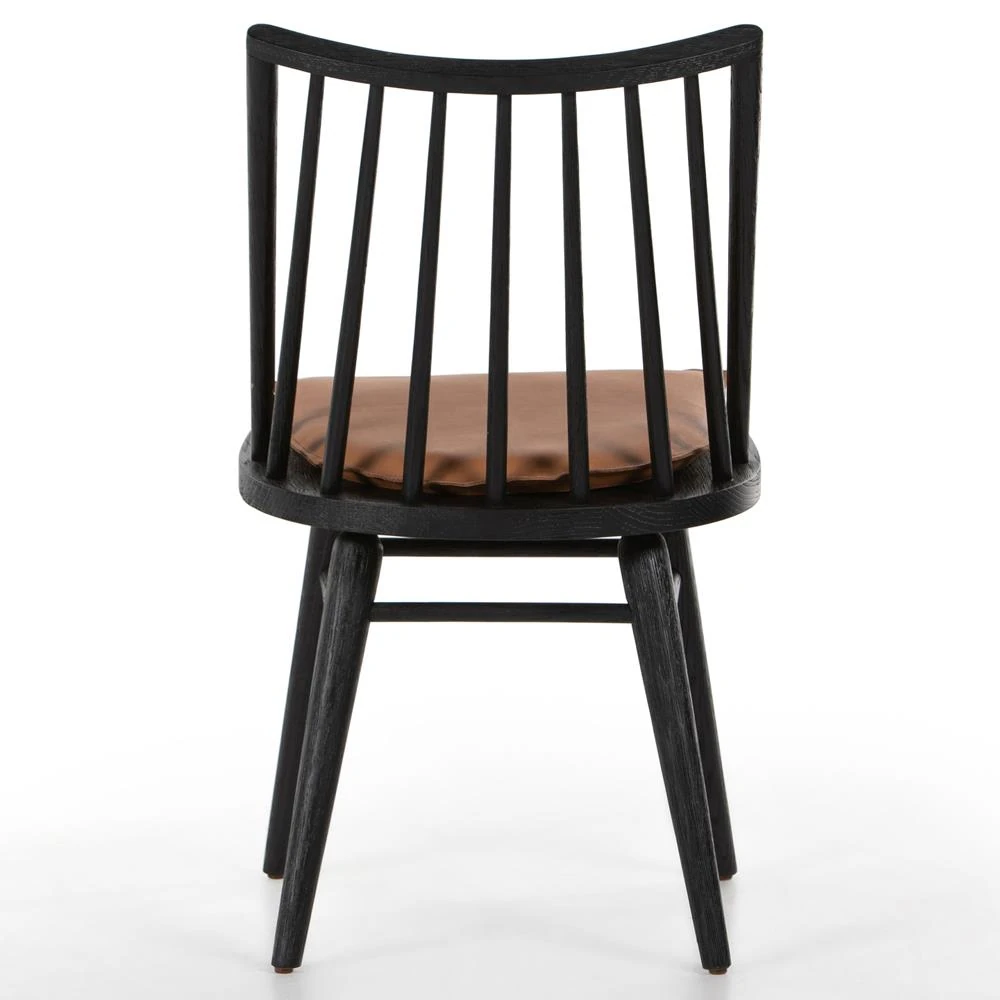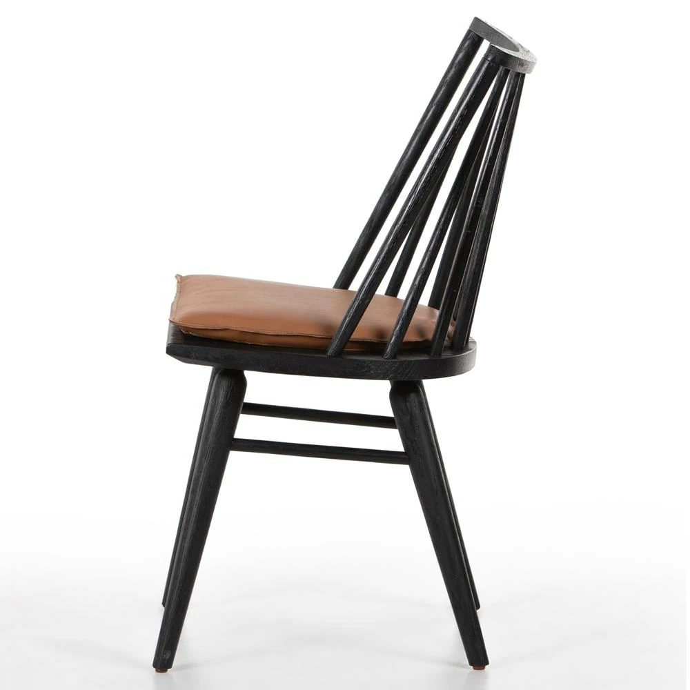Lara Rustic Lodge Brown Leather Black Oak Windsor Dining Side Chair
