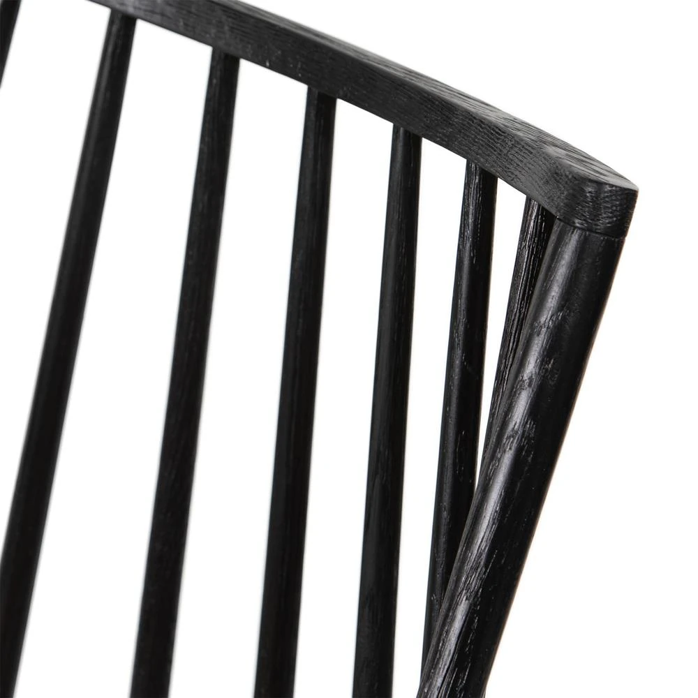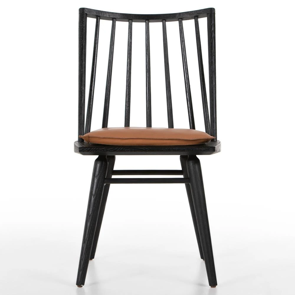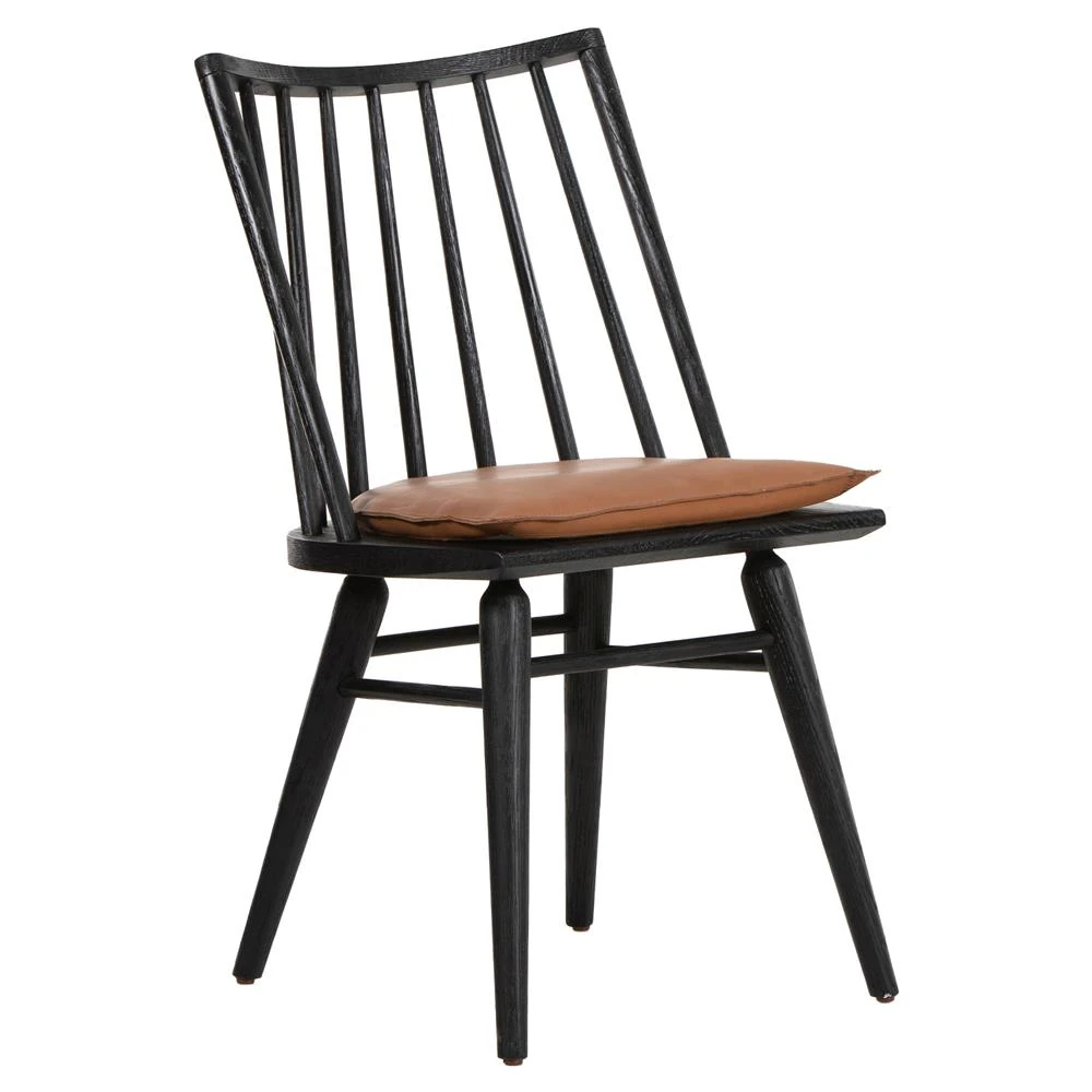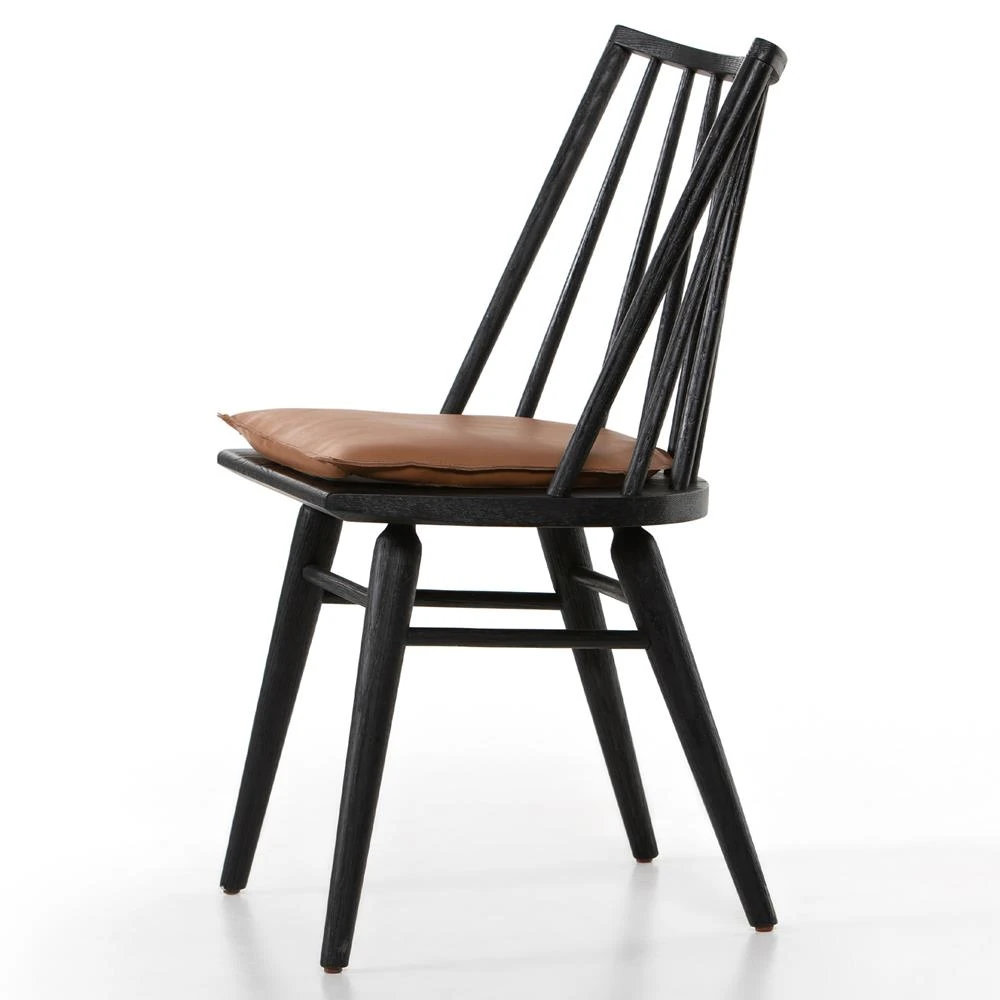 Lara Rustic Lodge Brown Leather Black Oak Windsor Dining Side Chair