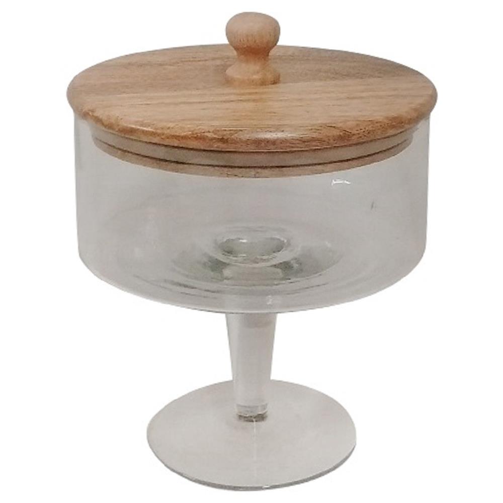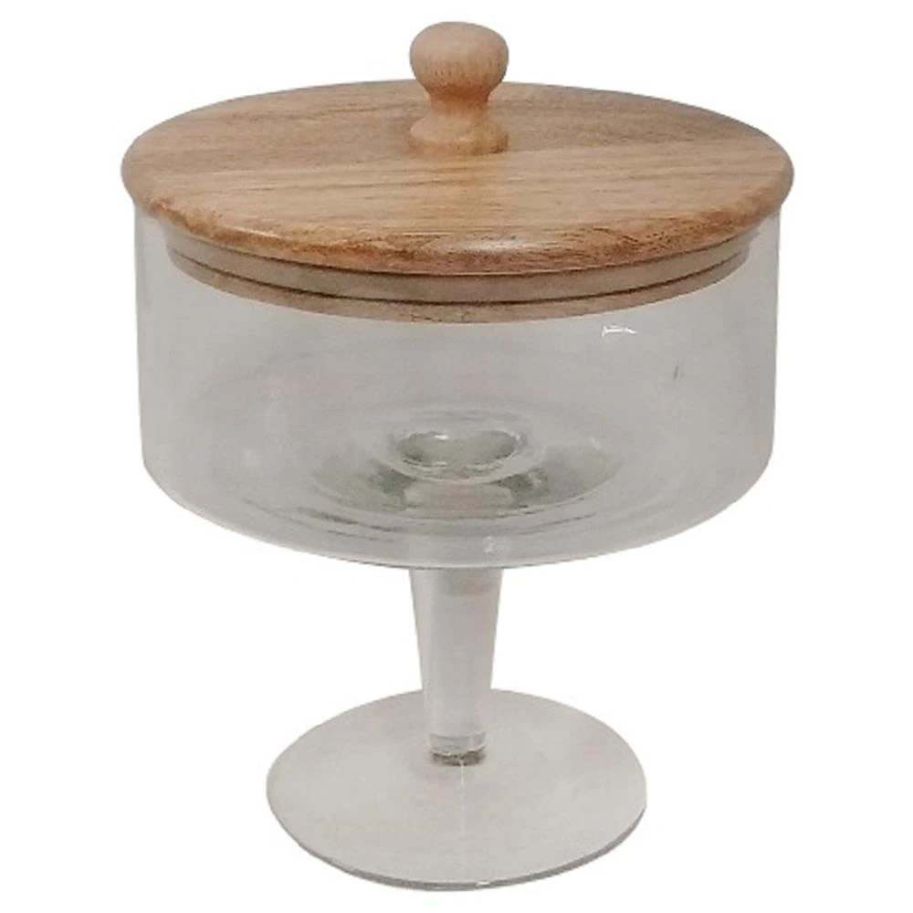 Rebecca Mid Century Modern Brown Mango Wood Clear Glass Decorative Jar - Small